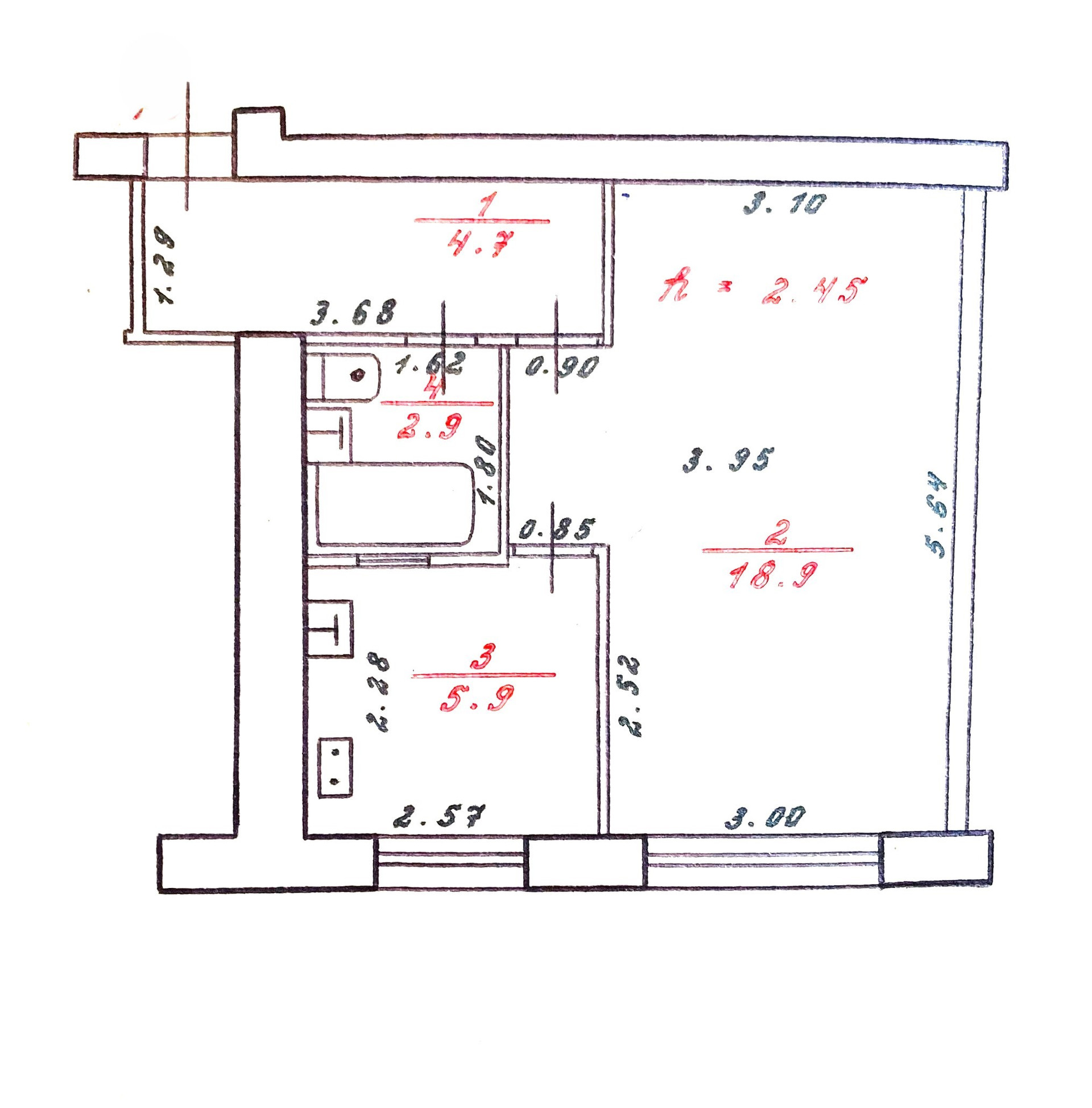 Жилая площадь 18.9 м2