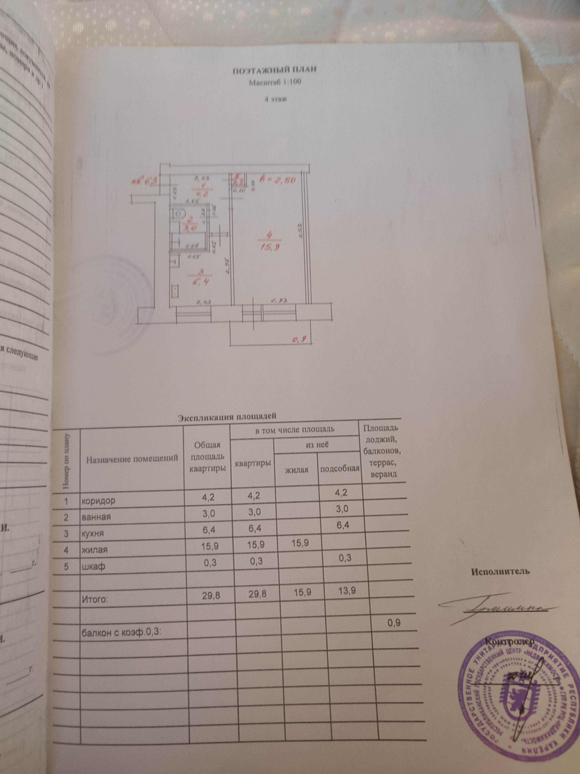 Общая площадь 29.8 м2