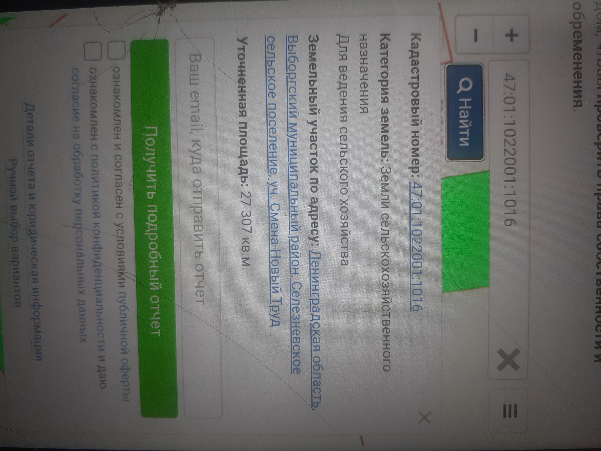 Площадь участка 27307 сот.