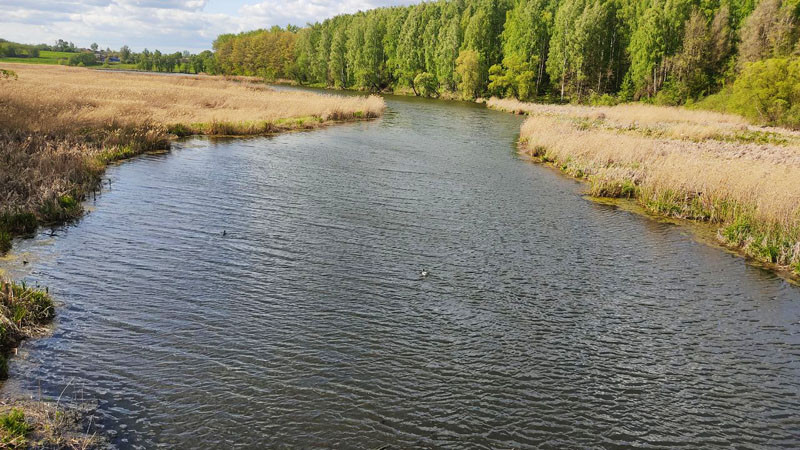 300 метров до пруда с рыбой и пляжем.