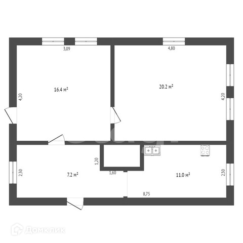 Общая площадь 55 м2