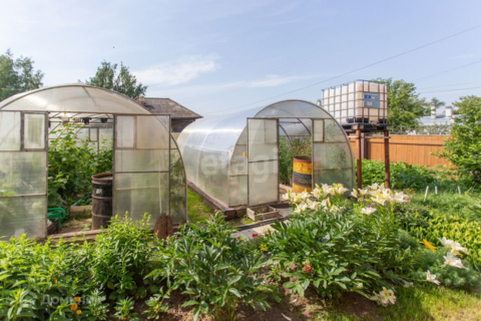 Большой двор, огорожен деревянным забором, есть теплицы, различные строения.