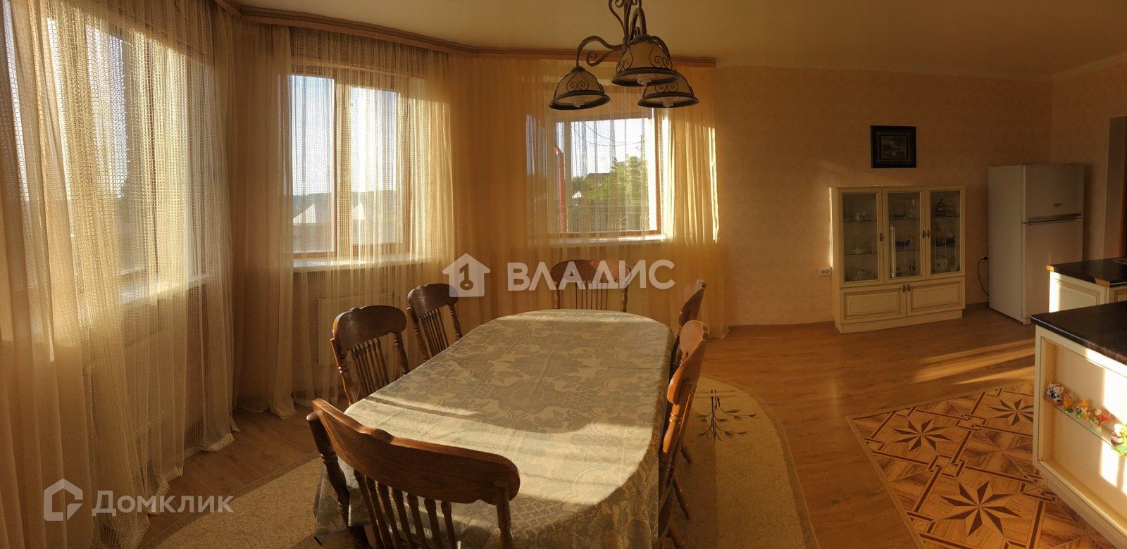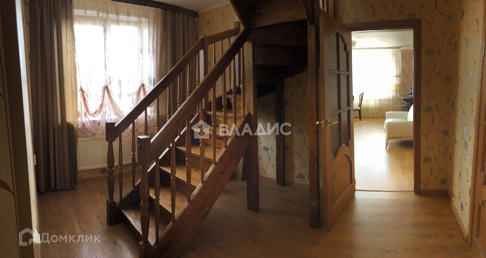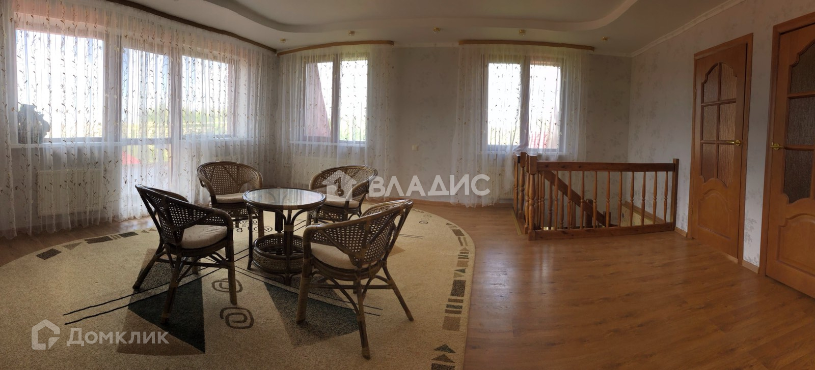 Коттедж построен из бруса, снаружи утеплён и отделан кирпичом, потолки 3м, две террасы, полы ламинат. Меблированный.