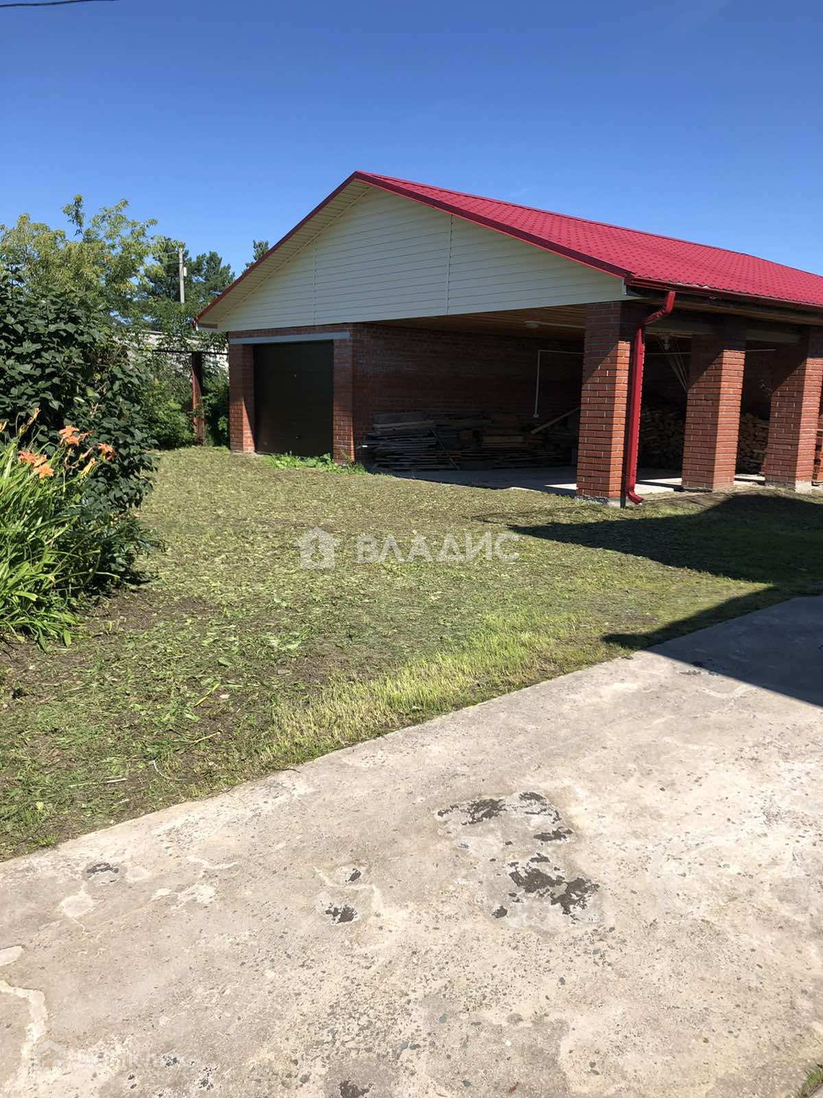 Участок разработан: имеются две теплицы и сад (ягодные кустарники, яблони, вишни), цветочные деревья и клумбы.