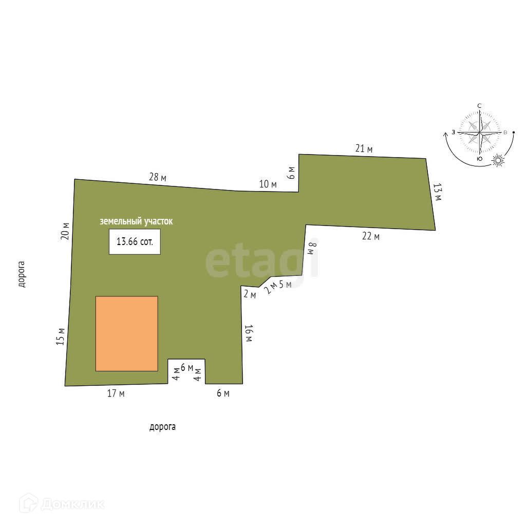 Площадь участка 13 сот.