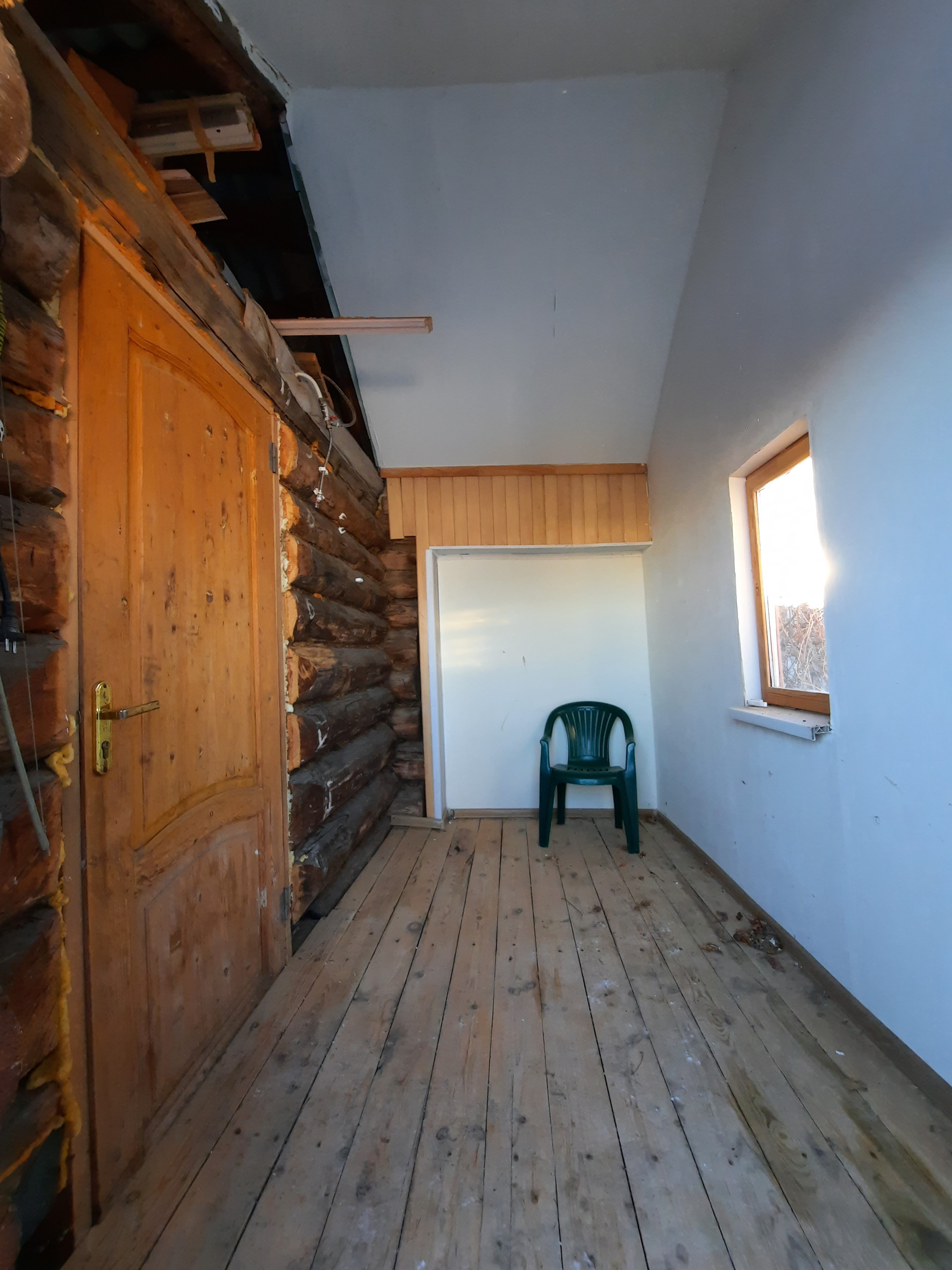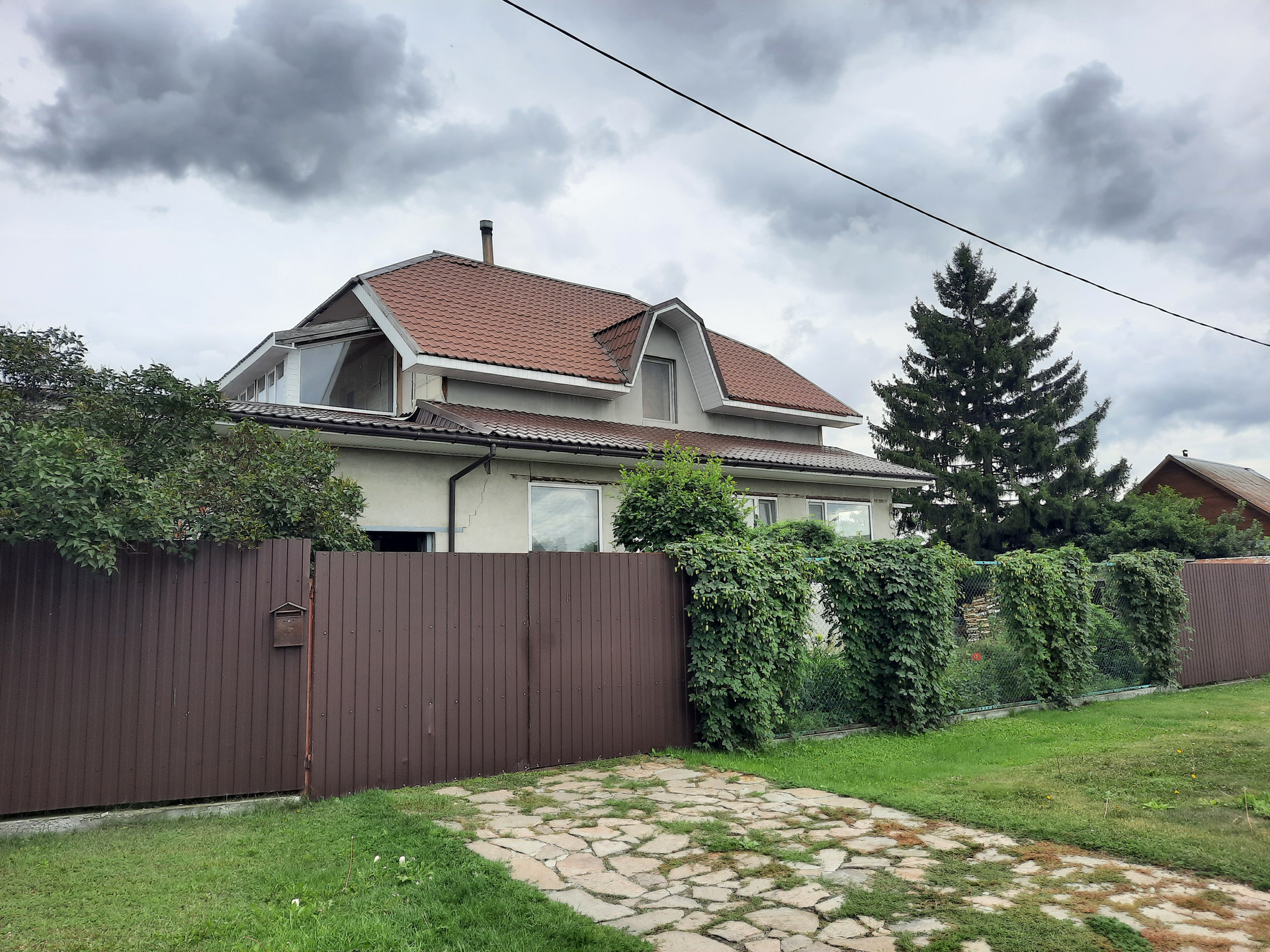 На 2 этаже находятся большой зал и три изолированных спальни (16,12,16 кв.м.), санузел и застеклённая лоджия. Полы деревянные, стены – обои. Имеется мансардный этаж.