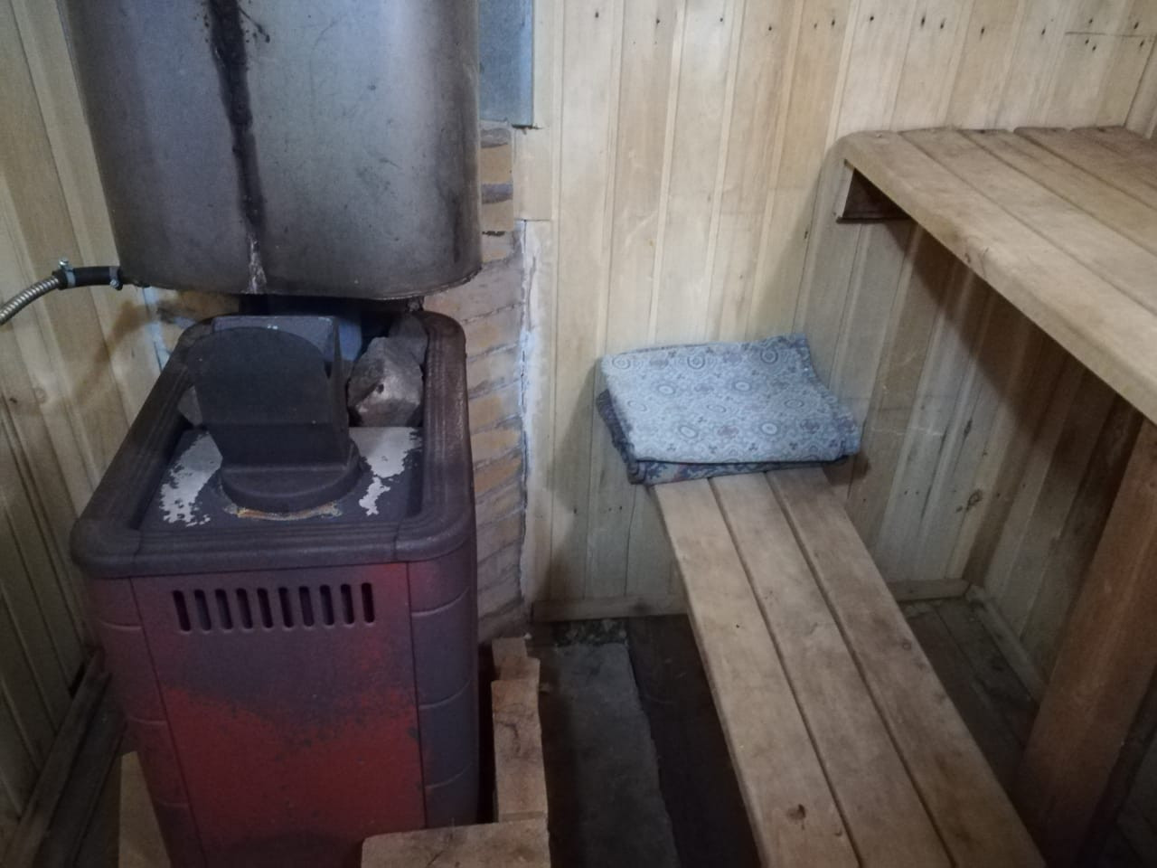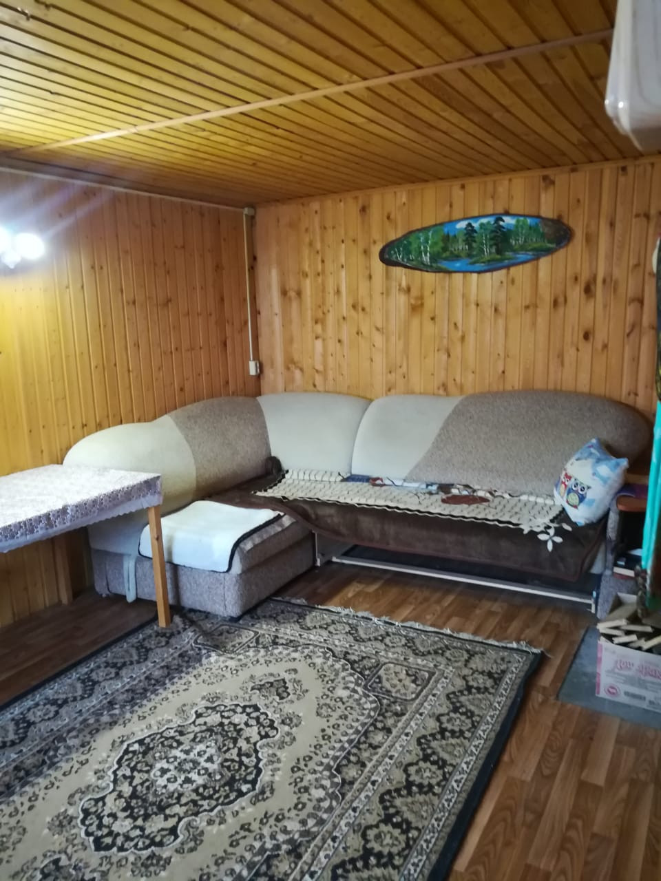 Первый этаж включает в себя отличную баню с жаркой парилкой и помывочной, комнату отдыха и кухню-гостиную. На втором этаже просторная спальня. Дом пригоден для постоянного проживания. Отопление - печь и электричество. Вода из скважины.