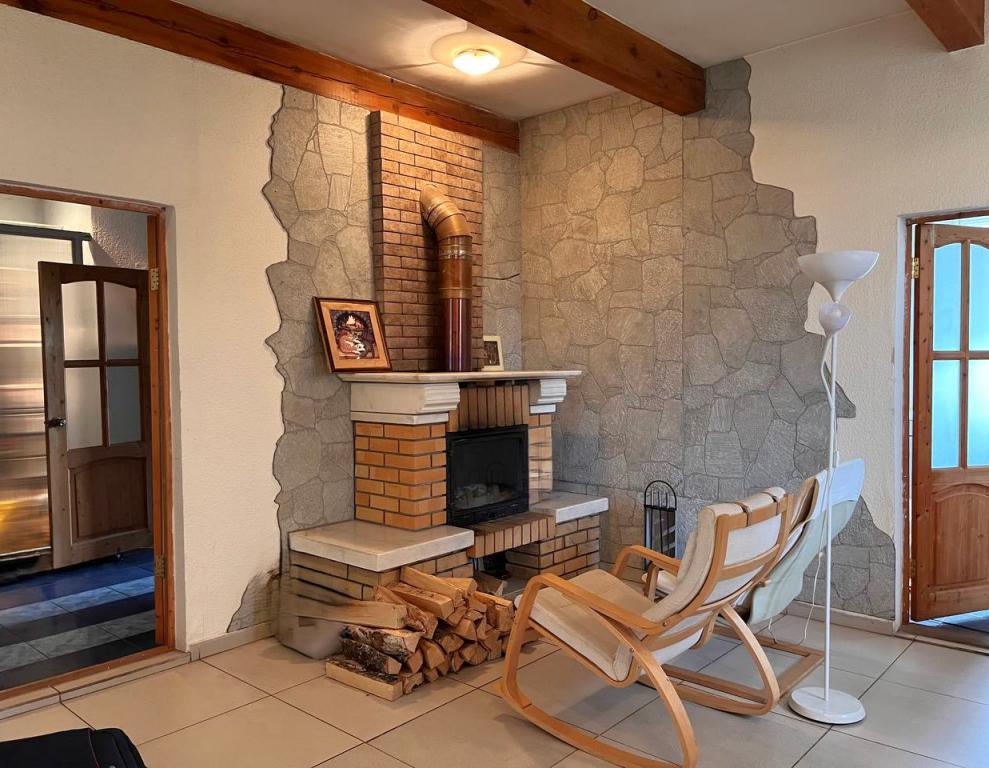 Фундамент – ФБС на 60 см, стены – пеноблок (утепление с двух сторон), крыша – металлочерепица. Эл-во: 220 15 кВт, канализация 32 куба, скважина 40 метров. Отапливается конвекторами и отопительной печью «Профессор Бутаков».