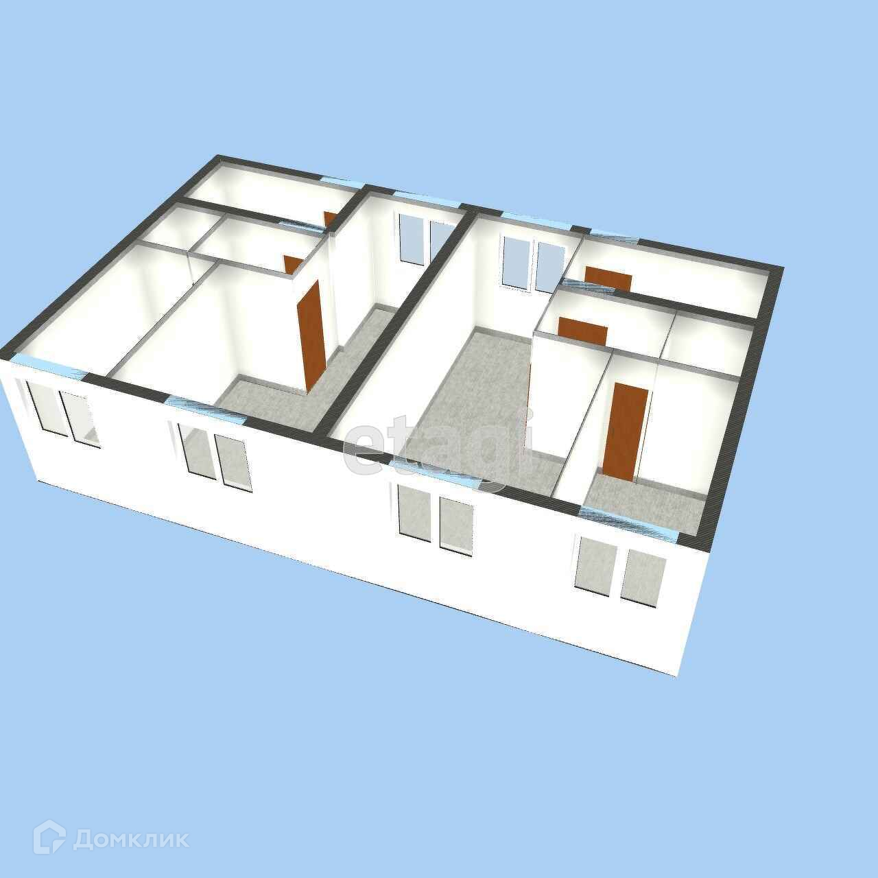 Каркас стен монолитный, блочное заполнение, перекрытие между этажами бетонное.