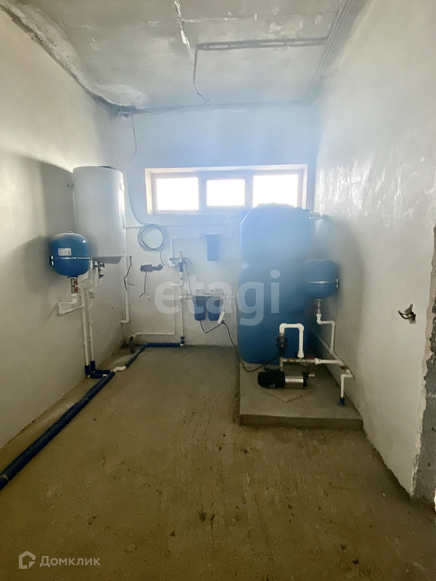 Первый этаж в предчистовой отделке, остальное в черновой. Монолитные лестницы между этажами.