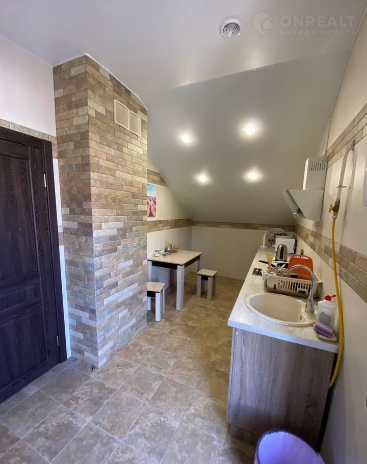 Первый этаж полностью сделан под банный комплекс, имеется зона отдыха, парилка, купель, две душевые кабинки, кухня.