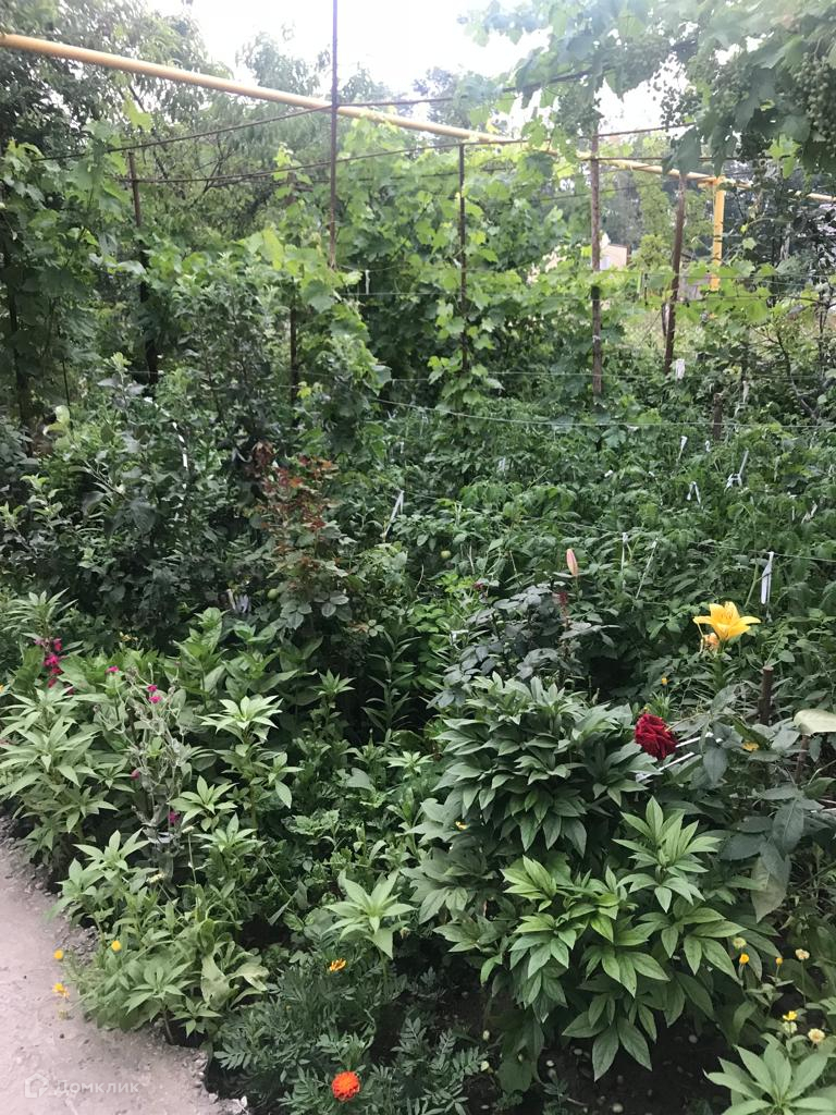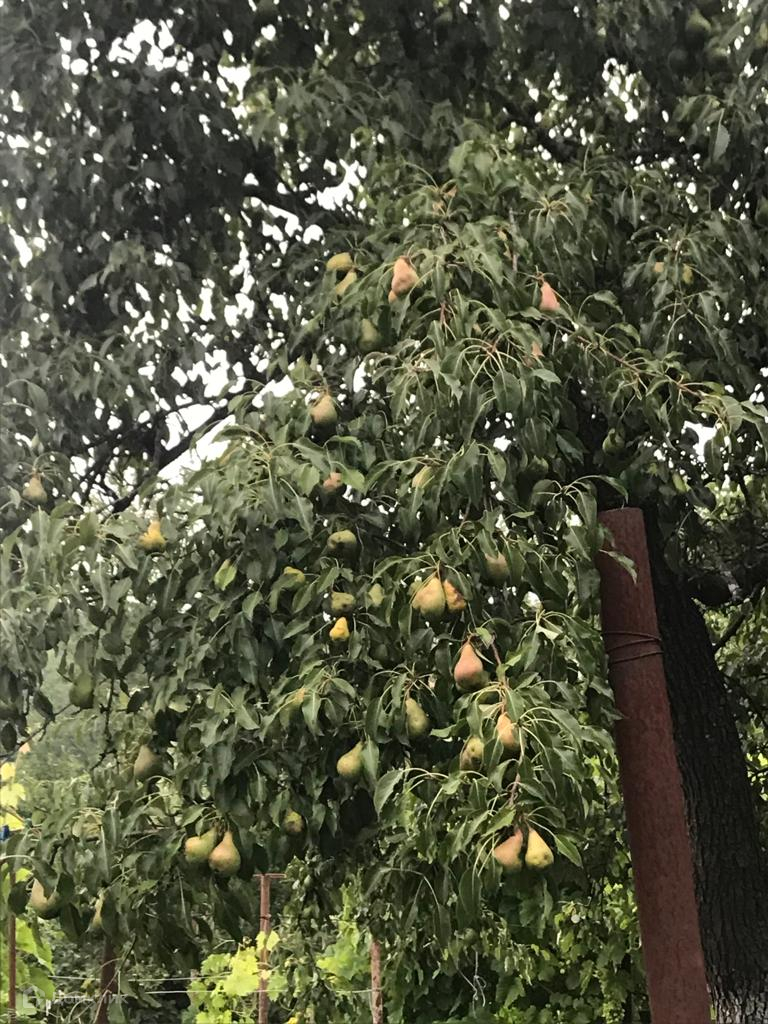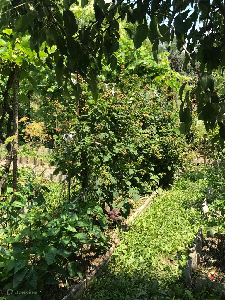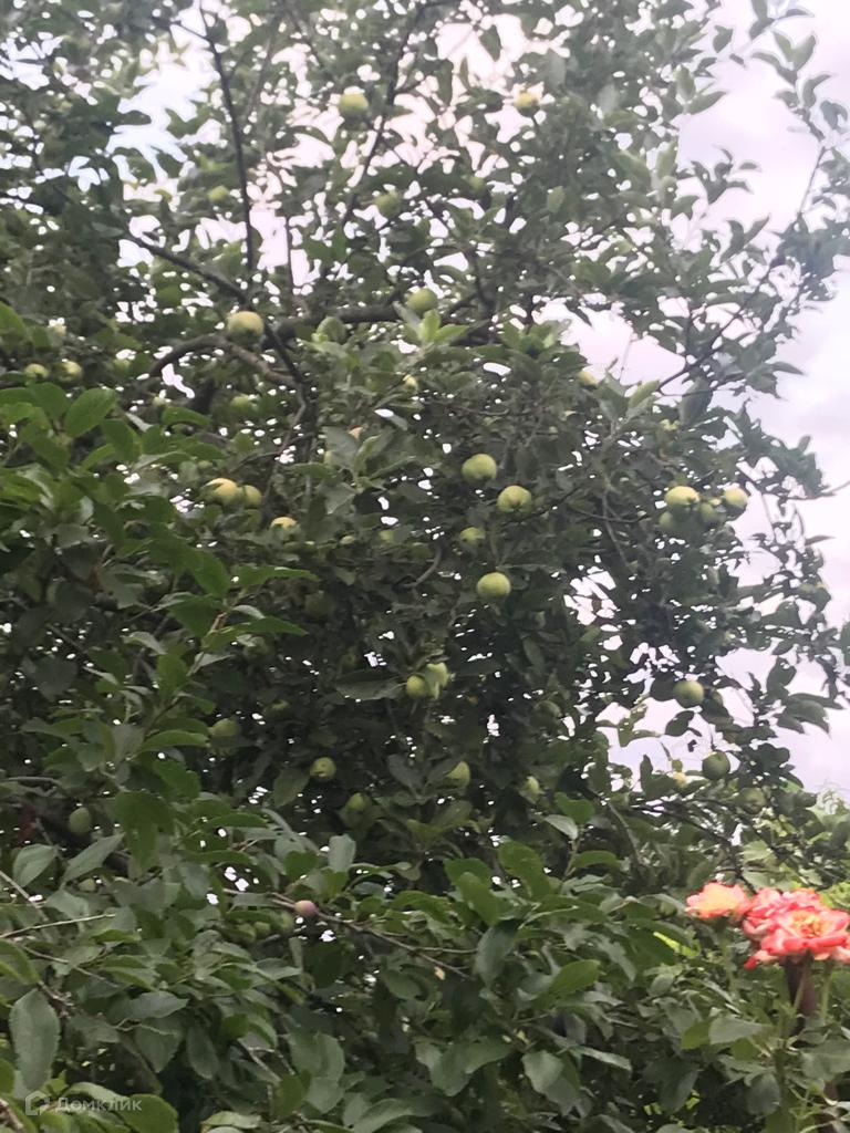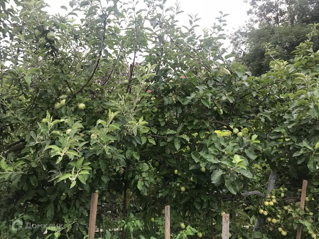На участке имеется сад с множеством плодовых деревьев.
