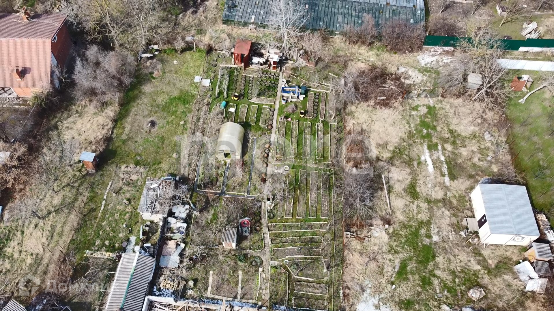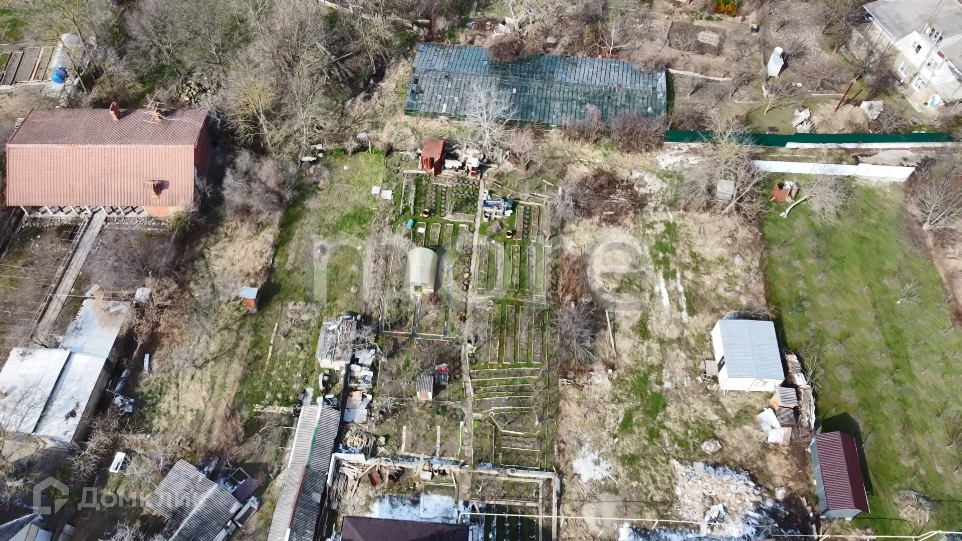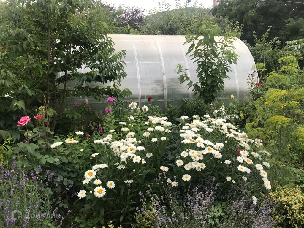 На участке имеется сад с множеством плодовых деревьев.