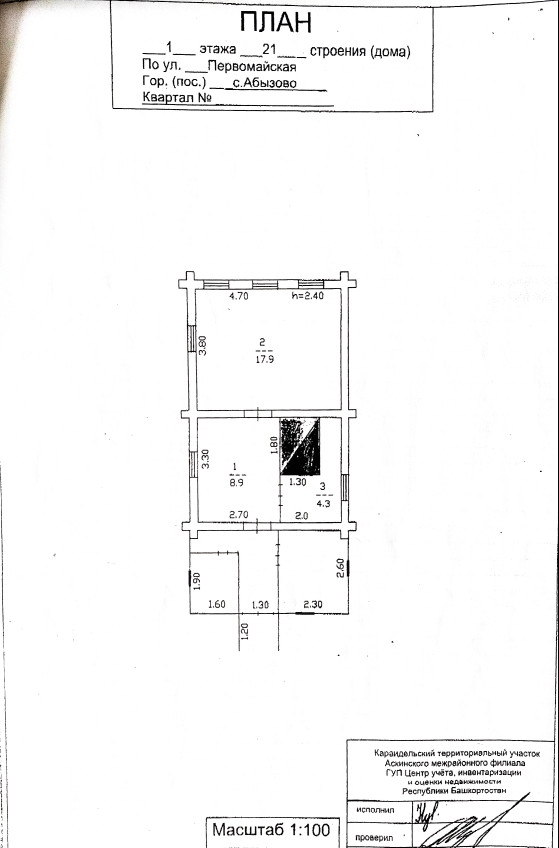 1-этажный дом, 31.1 м2, на продажу в селе Абызово, Первомайская улица