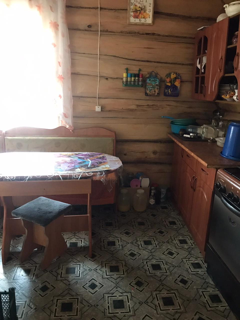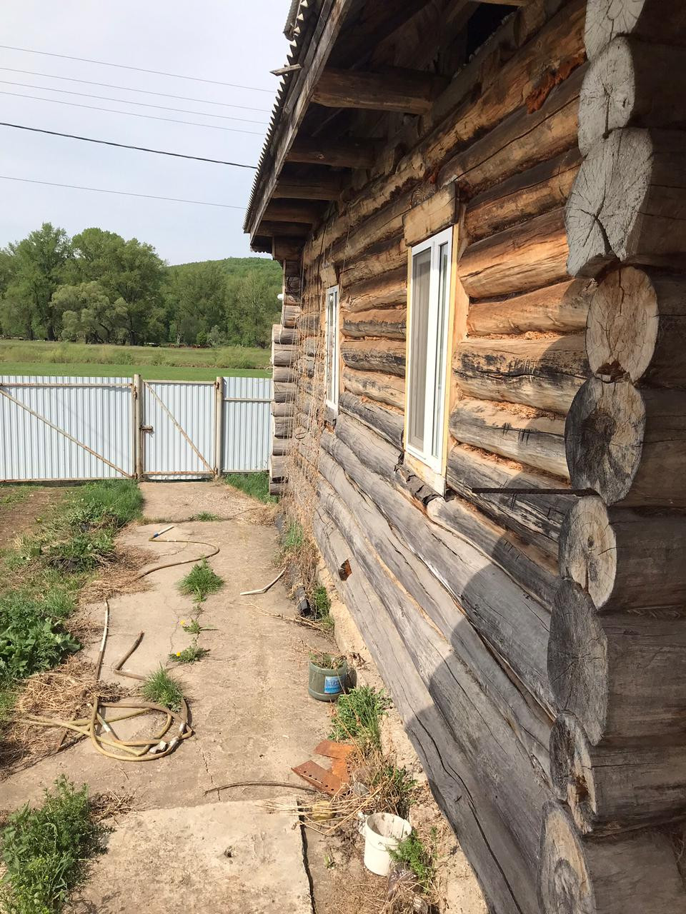 Дом построен из бревен.