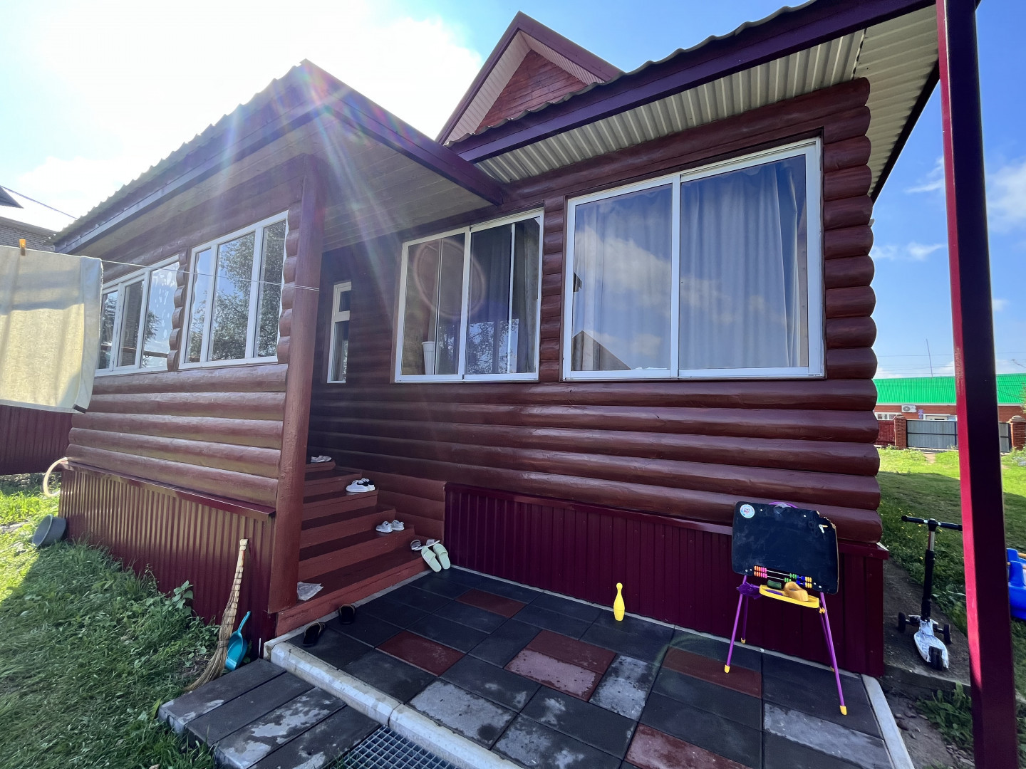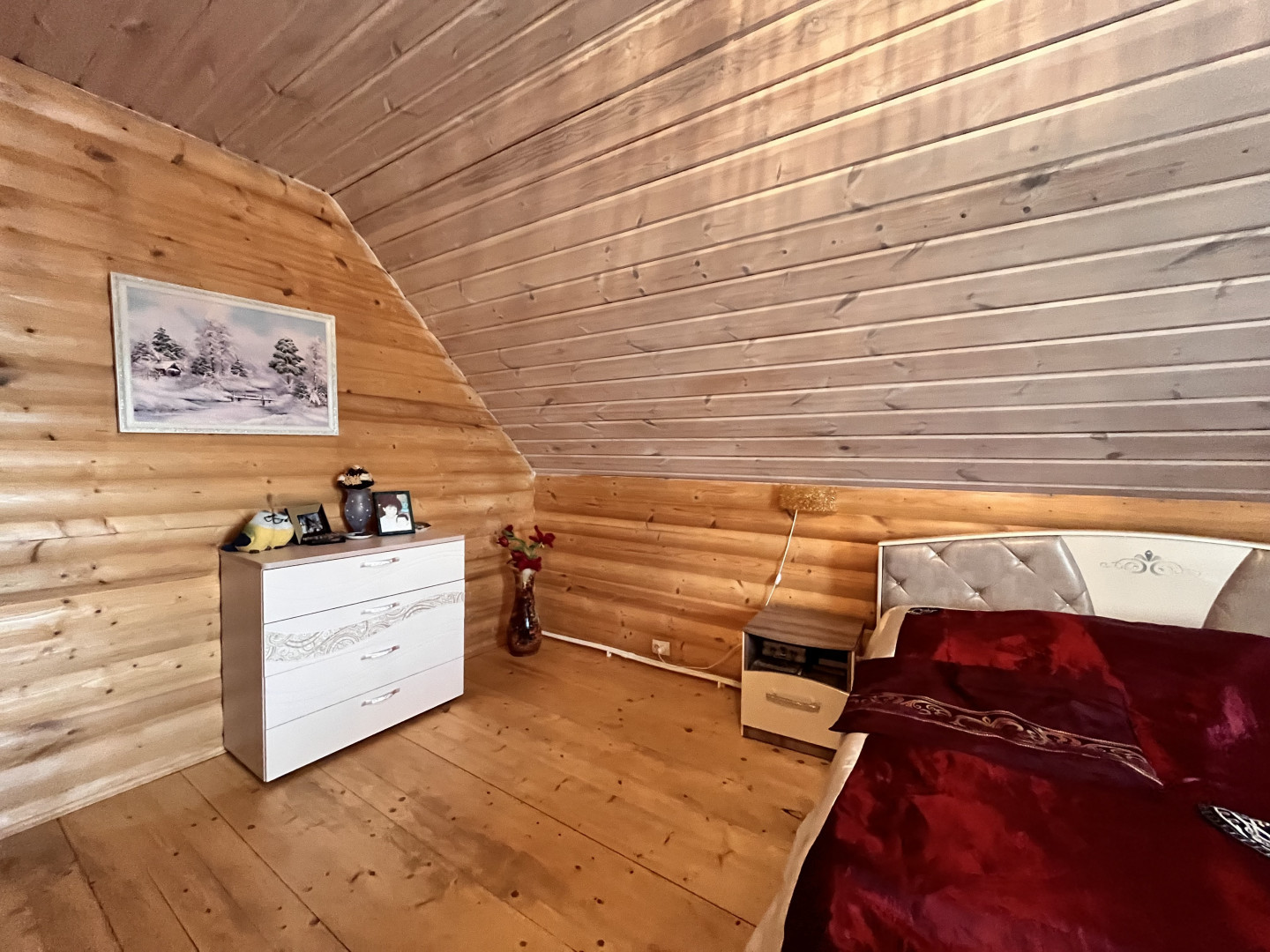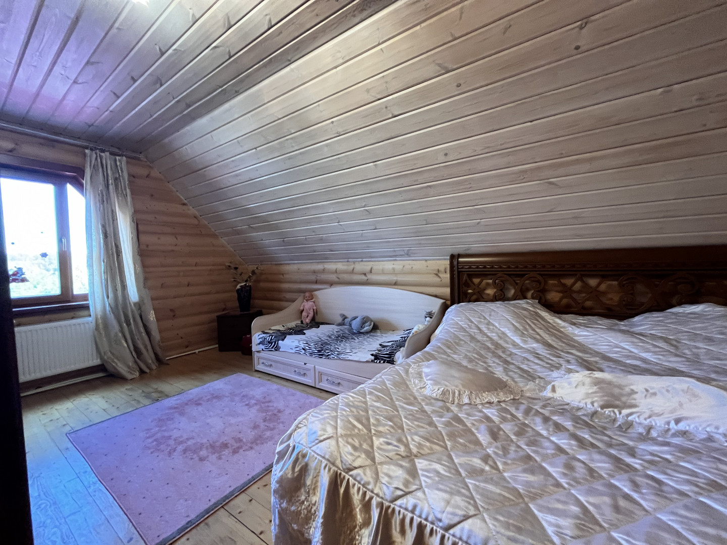 Описание: Дом построен в 2015 году из бревен по специальному заказу диаметром 45-50 см, каждое бревно в целях защиты обработан антисептиком Тиккурила. Фундамент свайный буронабивной ленточный. Дом состоит из двух этажей. Построен только из натурального дерева, для того чтобы сохранить на долго здоровье домочадцев.
