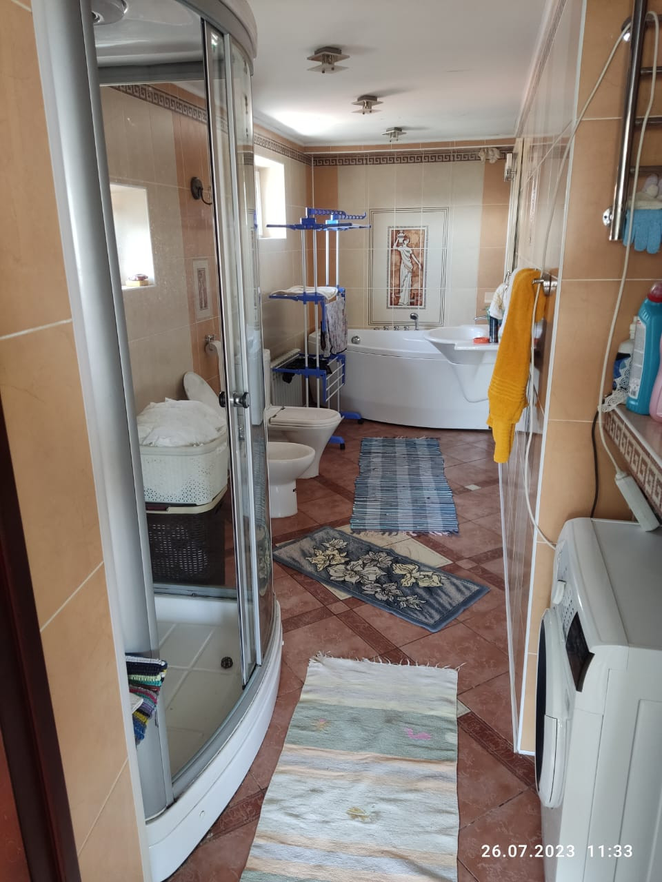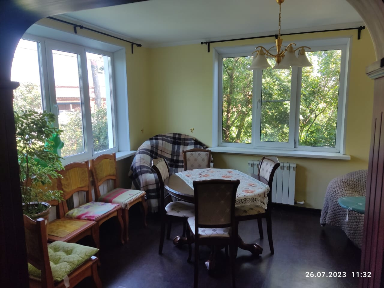 Площадь 1-го дома (см. фото плана жилого дома №106) - 145 кв.м., каркасно-засыпной, облицован кирпичной кладкой, введен в эксплуатацию в 1996 году, 4 жилых комнаты, 2 санузла (основной санузел оборудован биде и джакузи, душевой кабиной), имеется кухня и отдельная столовая. Дом газифицирован, отопление от газового котла (находится в отдельном помещении - котельной), водоснабжение централизованное, выгребная яма, установлен кондиционер с 2-мя сплит-системами. У дома имеется два входа: парадный (с лицевой стороны дома) и рабочий (с внутреннего двора). Окна пластиковые (стеклопакеты). Под общей крышей с жилым домом также просторная веранда, вместительный гараж. Отдельно стоящие здания: дровяная баня, хоз. постройки для содержания скота, свиней, овец и куриц (действующее личное подсобное хозяйство). Отдельный погреб для хранения овощей, заготовок, имеется отдельная постройка с печным отоплением для временного проживания помощников по хозяйству. Жилой дом и хоз. постройки находятся на земельном участке площадью 2 287 кв.м. Дом окружен садом с плодоносящими деревьями и кустарниками. Мебель и бытовая техника частично может быть оставлена новым хозяевам.