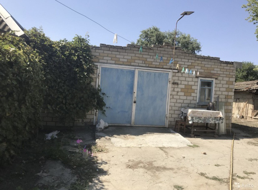 Гараж кирпичный с железными воротами