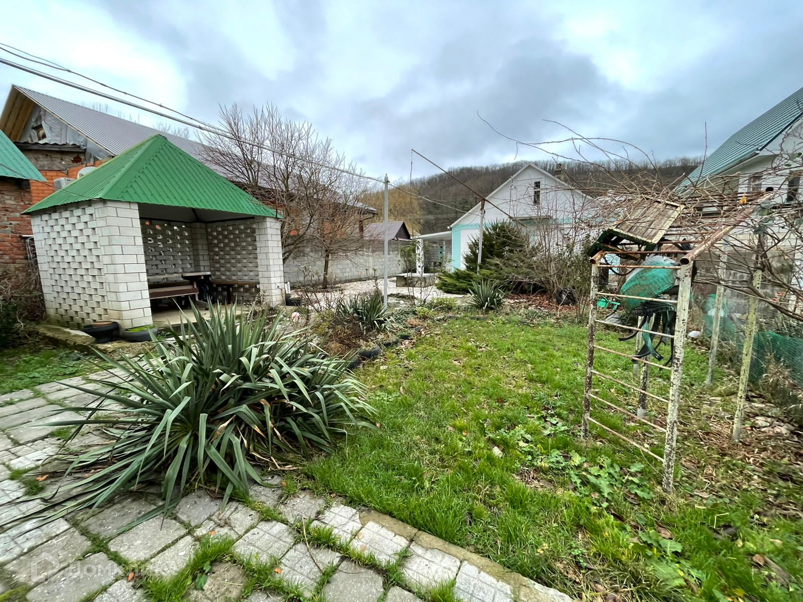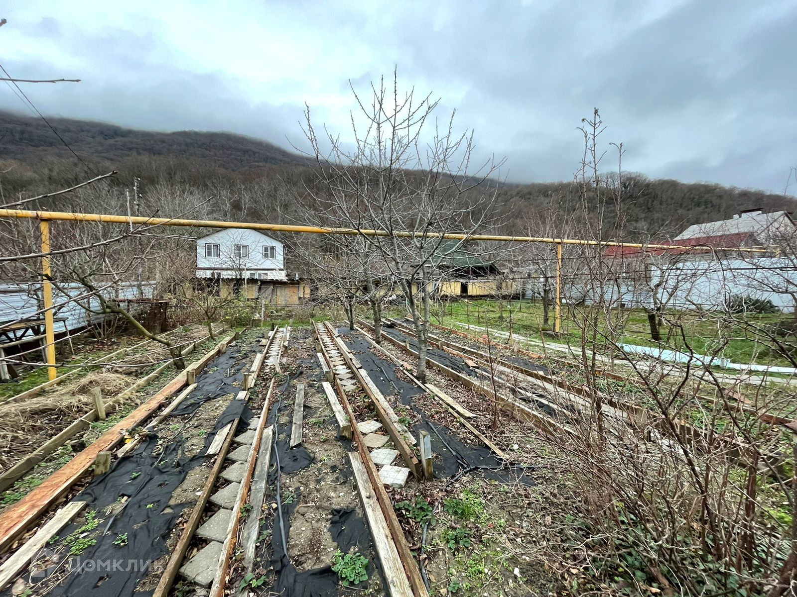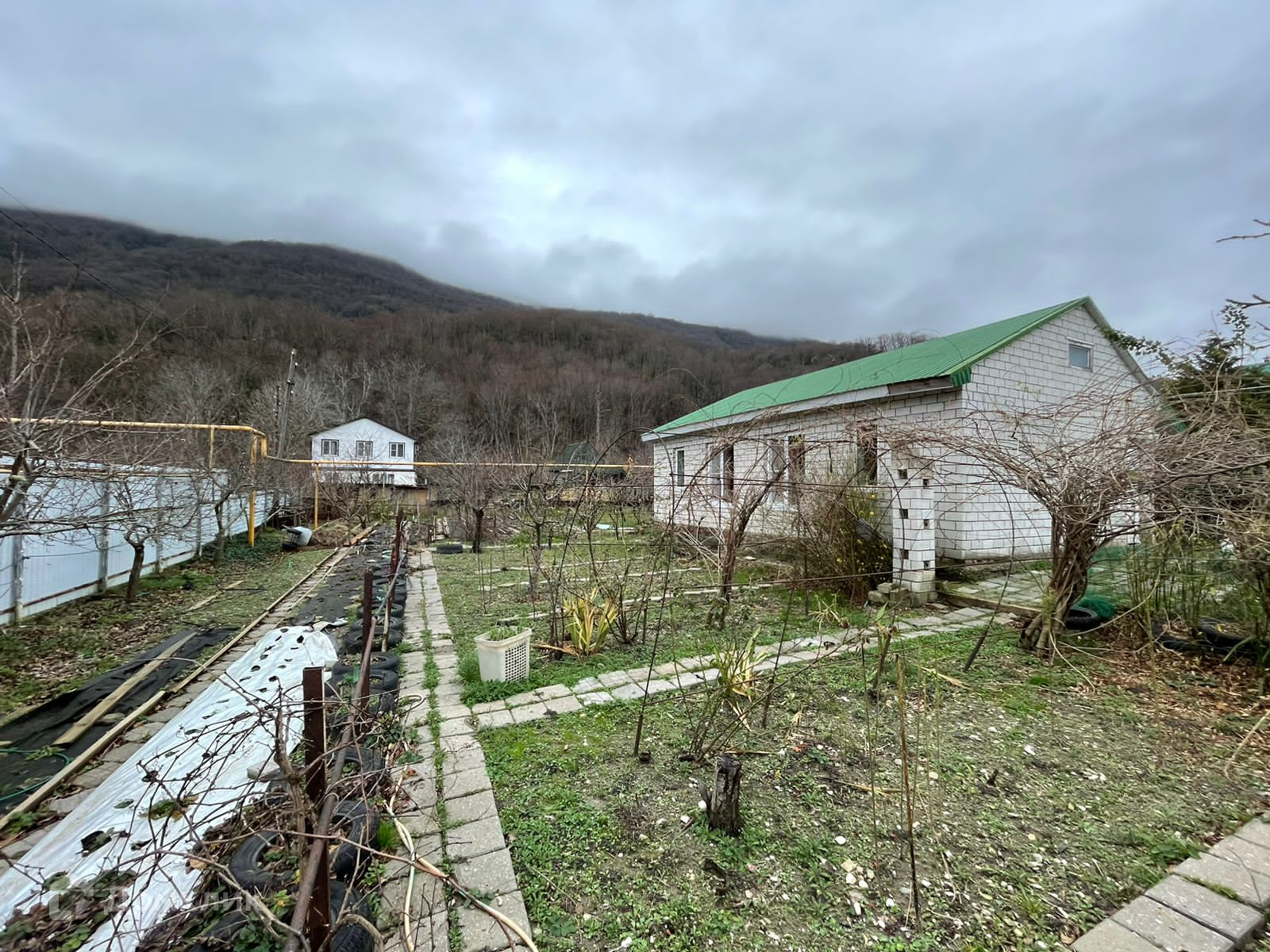 Баня, беседка, взрослый фруктовый сад.