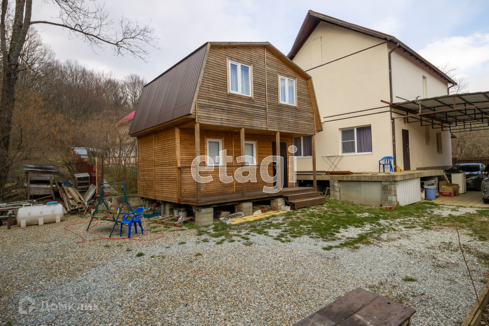ГОСТЕВОЙ ДОМИК ( на фото - деревянный). 2 Этажа, 60 кв.м., хорошо сдается в аренду отдыхающим круглый год.