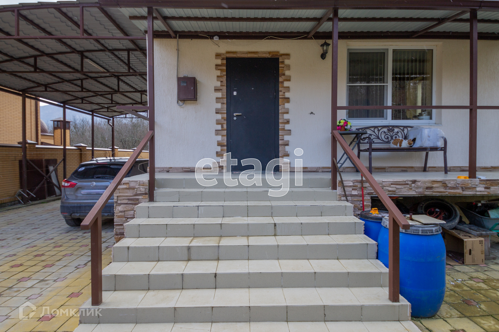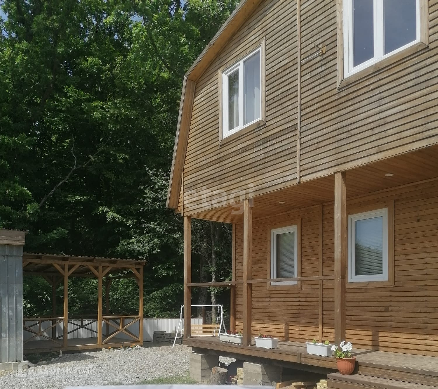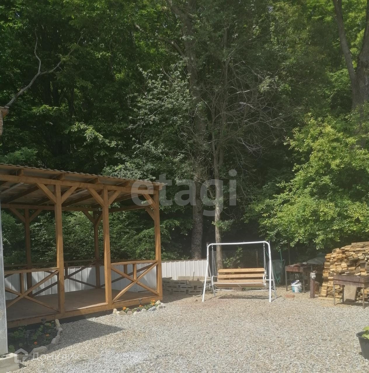 Во дворе уложена плитка. Взрослые плодовые деревья. Есть собственный выход в лес и к речке.  Номер в базе: 23082 .