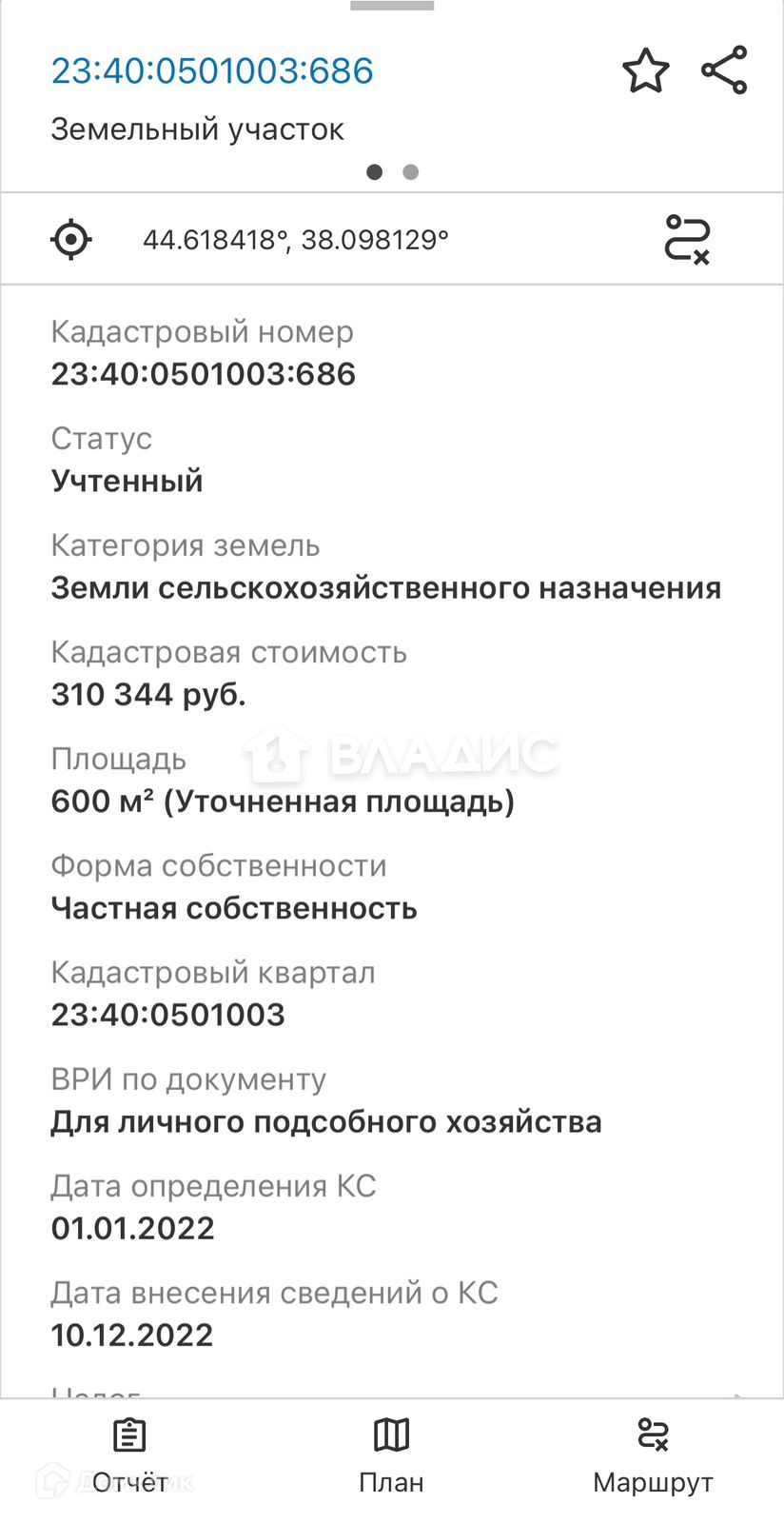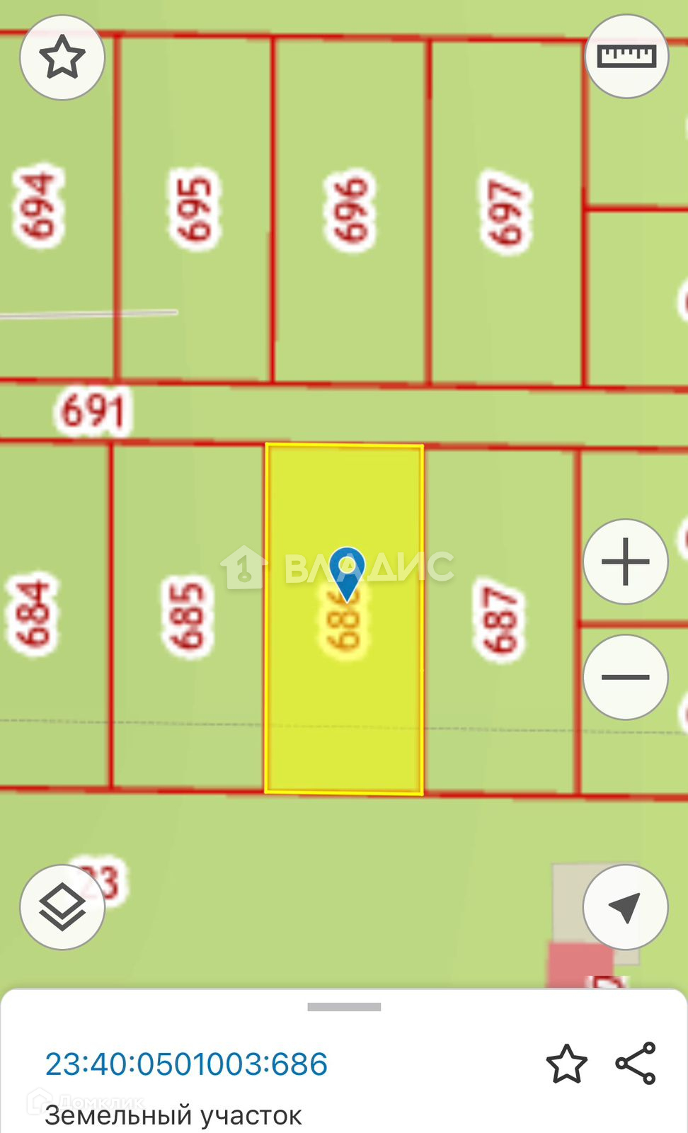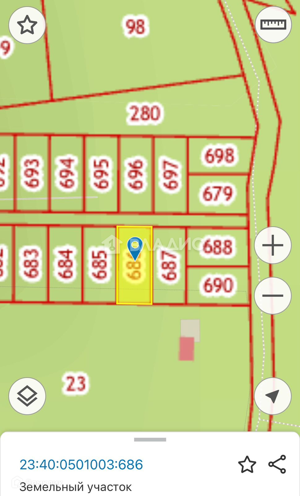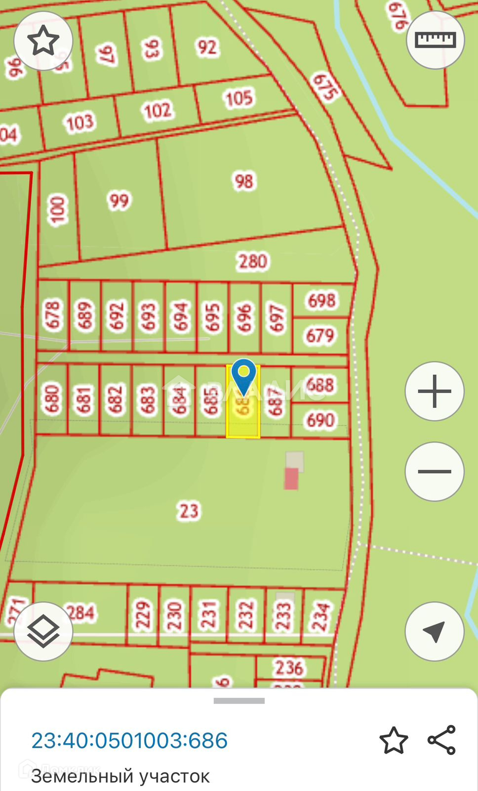 ● Кадастровый номер - 23:40:0501003:686