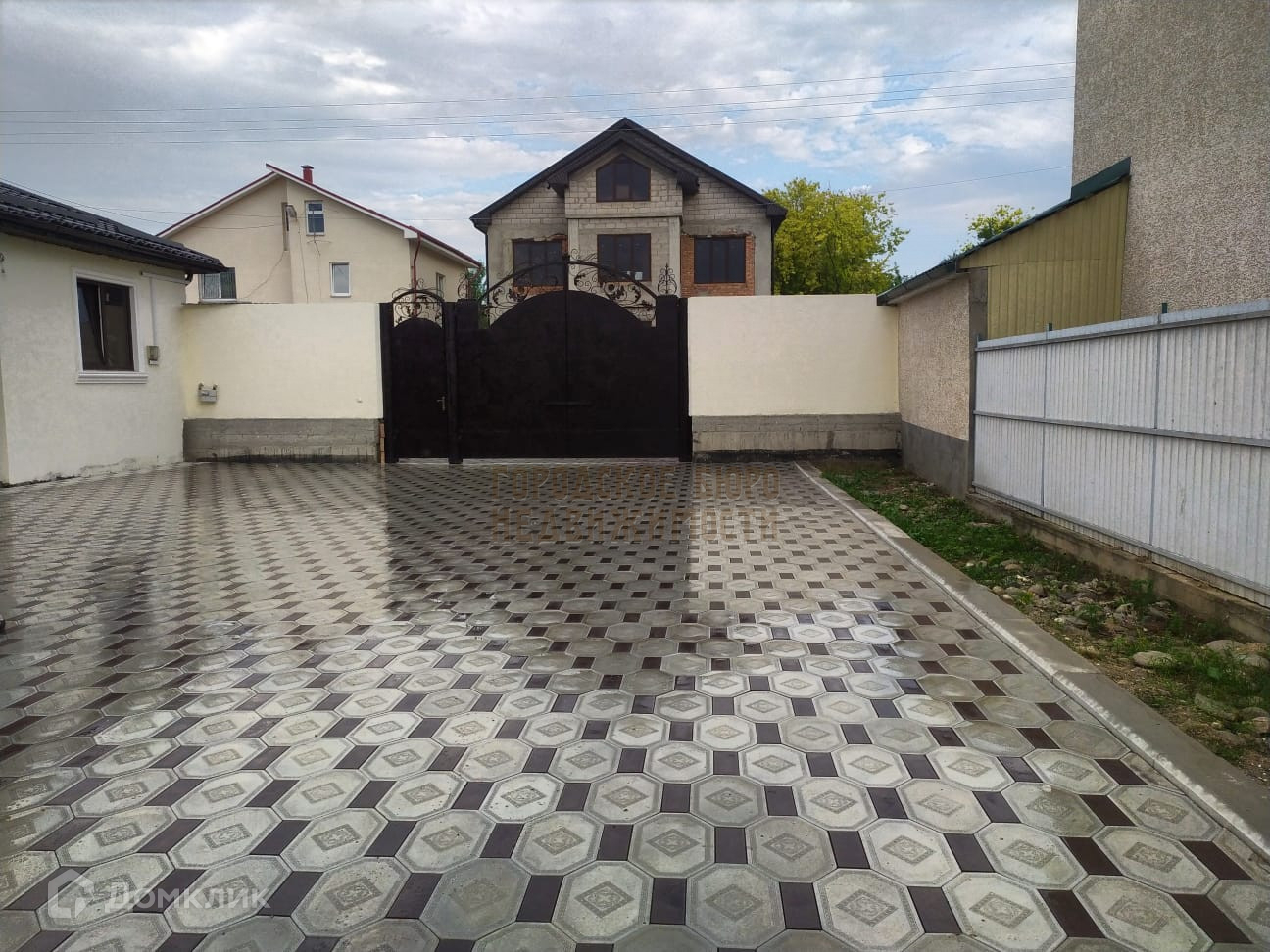 Добротные ворота стоят, двор и въезд выложен плиткой.