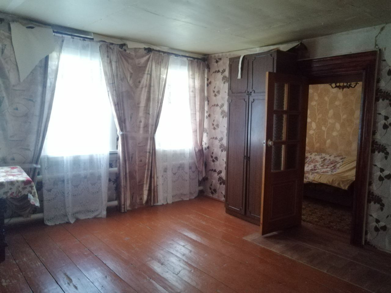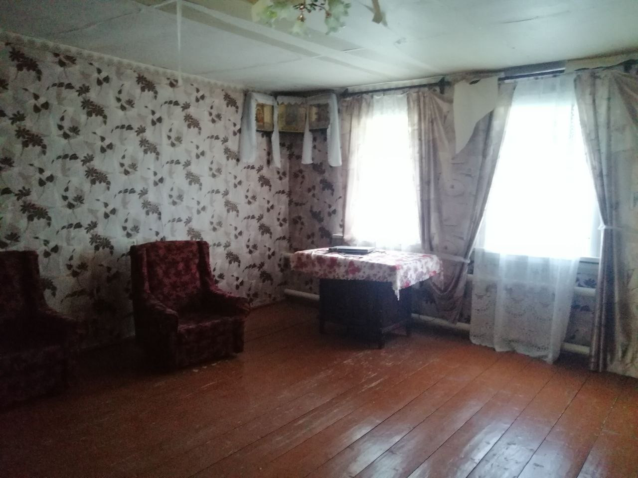 Добротный высокий фундамент, полы деревянные, крепкие. Две спальни, прихожая, большой зал, коридор, кухня, совмещенный санузел. Окна в зале, одной спальне и кухне ПВХ. Есть холодный коридор. Отопление водяное. Водопровод центральный, канализация - два септика.
