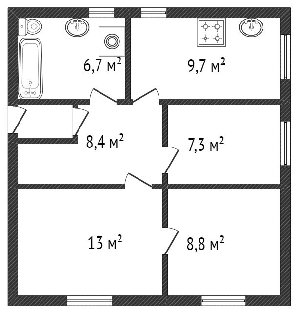 Общая площадь 55.2 м2