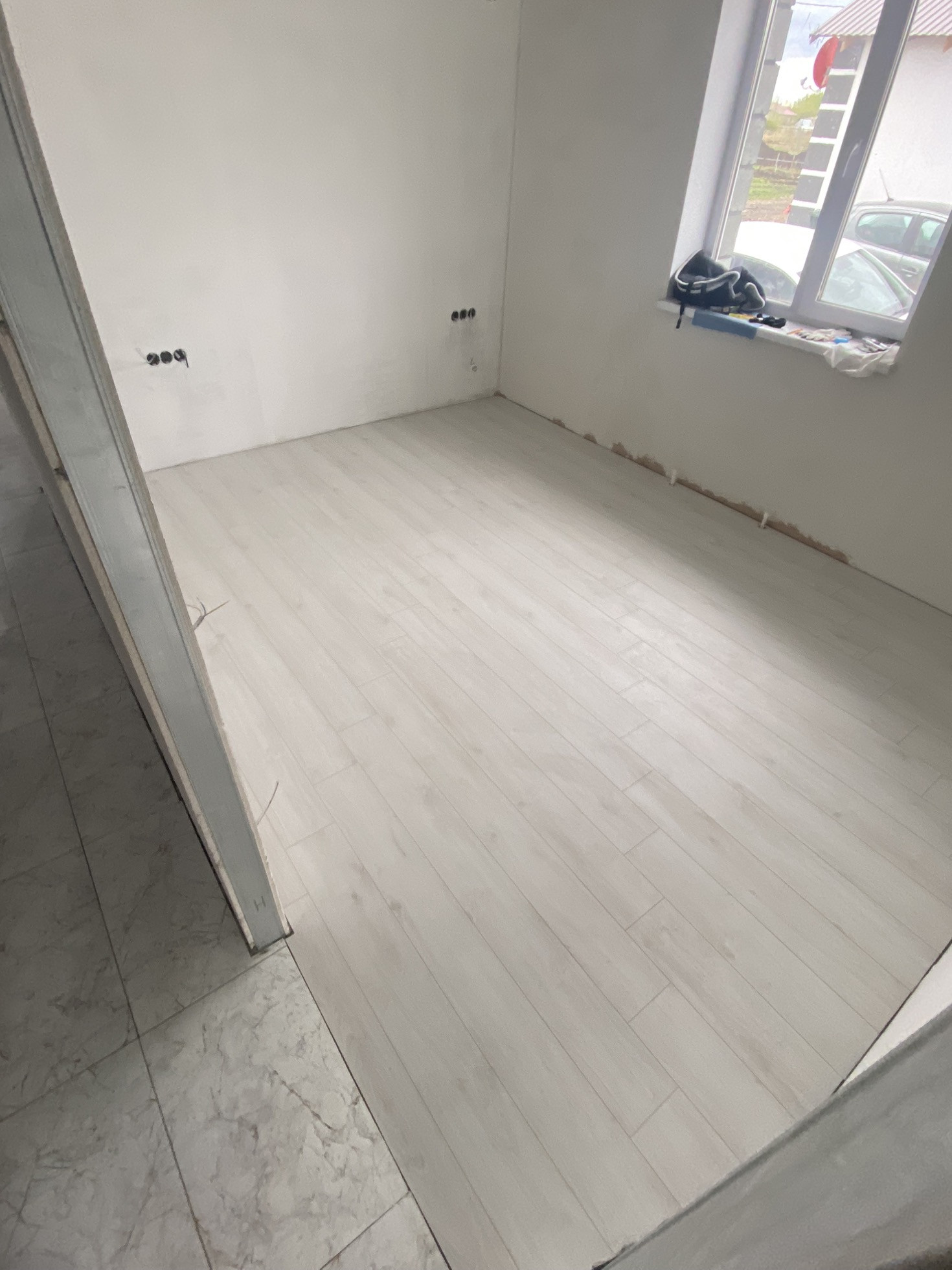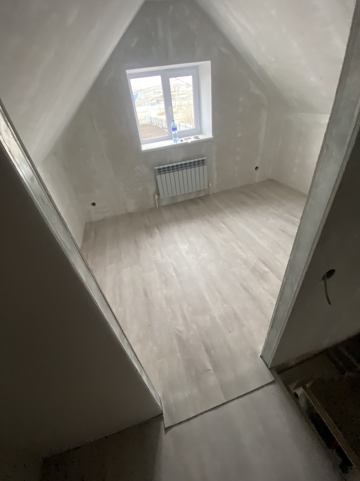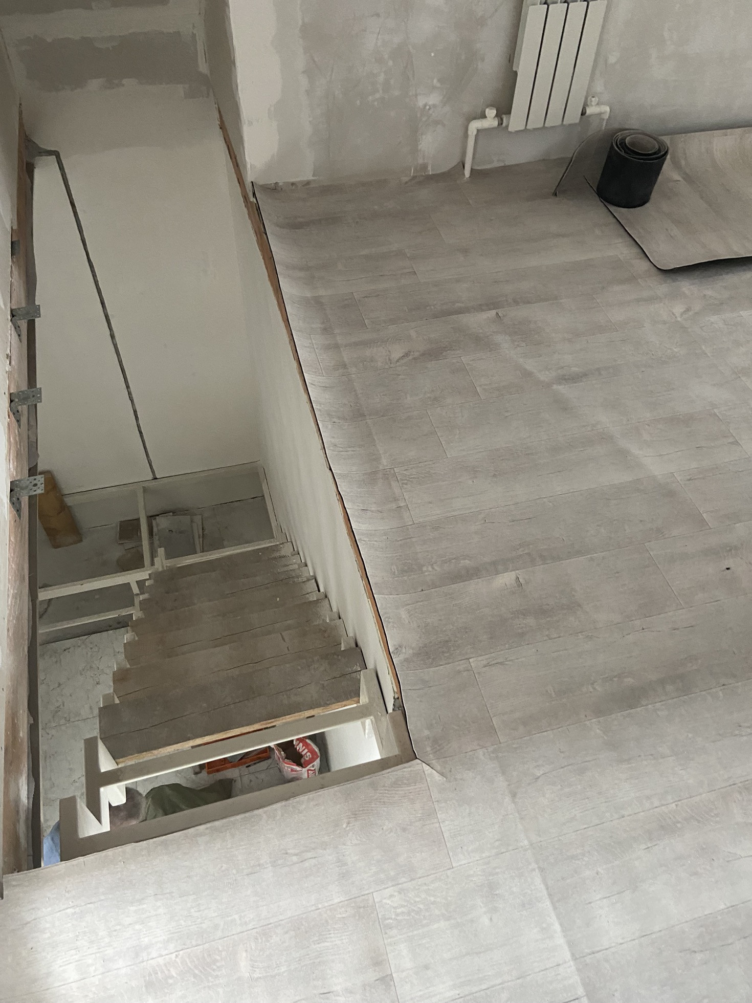 На втором этаже только постелили линолеум.