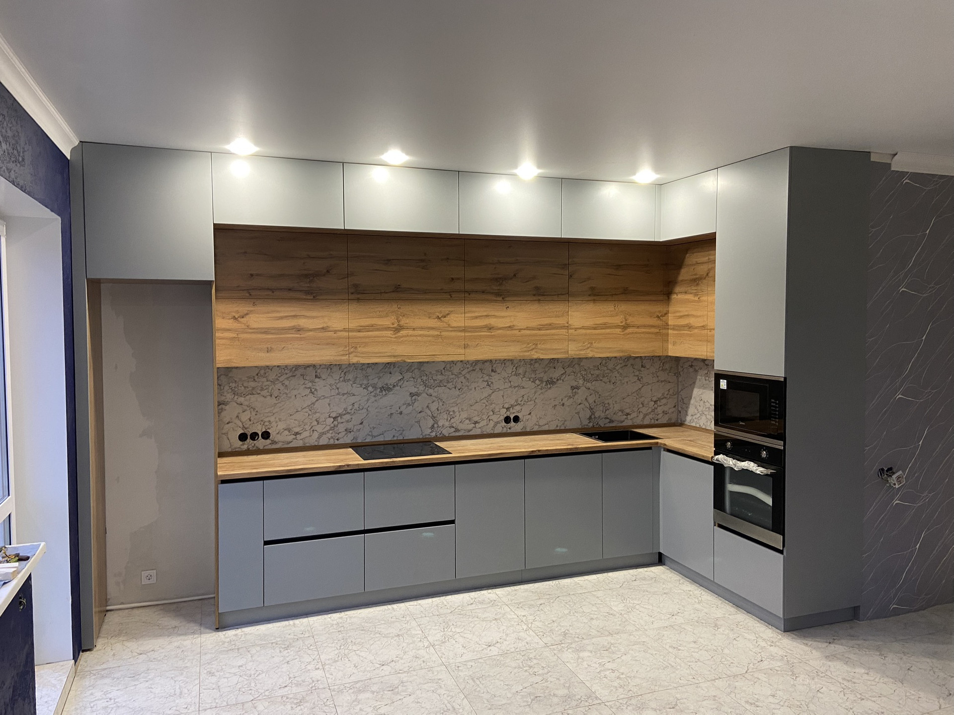 В коридор и в зал куплены обои (не наклеены). Кухня остается без техники.