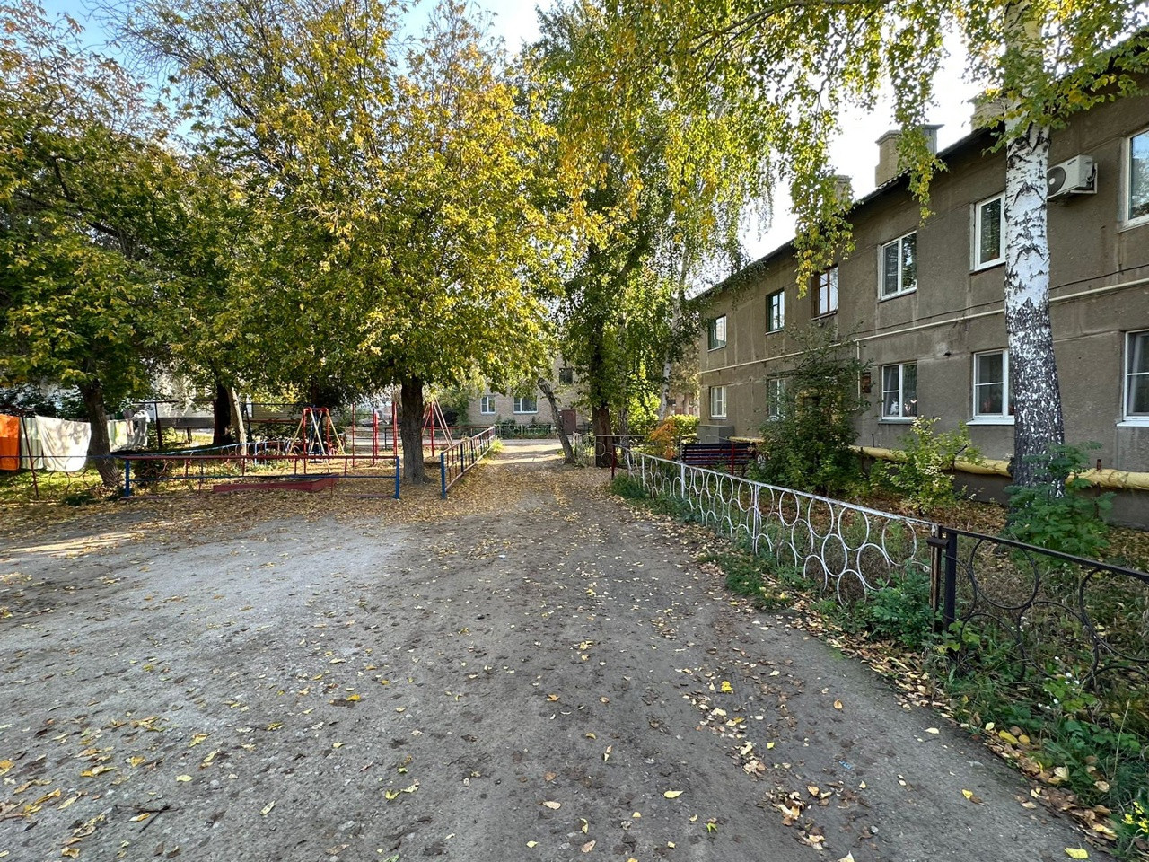 Во дворе детская площадка, парковка.