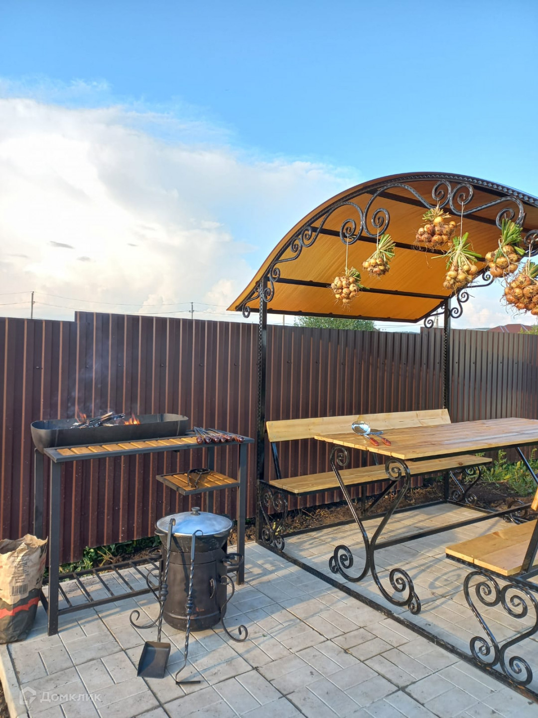 Перед входом – въезд в гараж с автоматическими секционными воротами (7*4,5 м). Улица и подъездные пути асфальтированы. Участок – 10 соток, есть зона для барбекю с новым мангалом, баня из сосны с новой печью под крышей (90 % готовности, есть стройматериалы) 5*3 метра с фундаментом, хозяйственный блок 10*3 метра из керамзитных блоков с фундаментом под крышей, новая теплица 8*3 метра из поликарбоната. Есть скважина на участке под питьевую воду. Ведутся работы по проведению на улице централизованной воды. Есть душевая кабина рядом с баней. На участке есть подвал, можно использовать под хранение овощей, участок огорожен со всех сторон профнастилом. Есть скважина для питьевой воды.