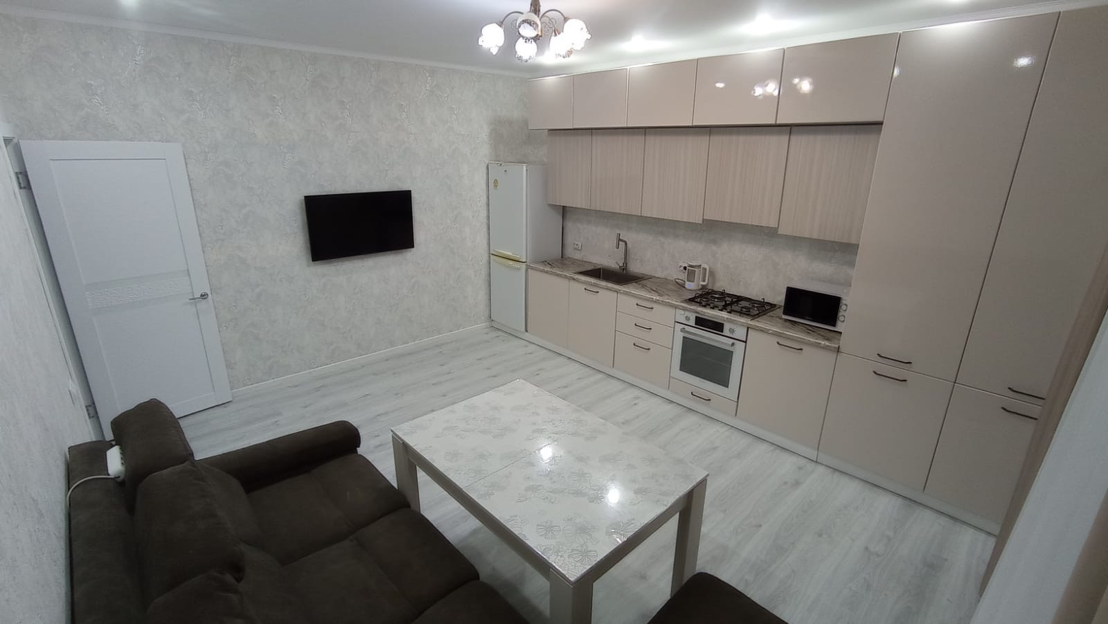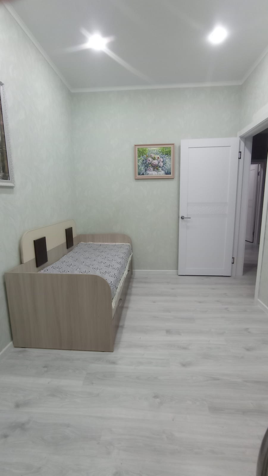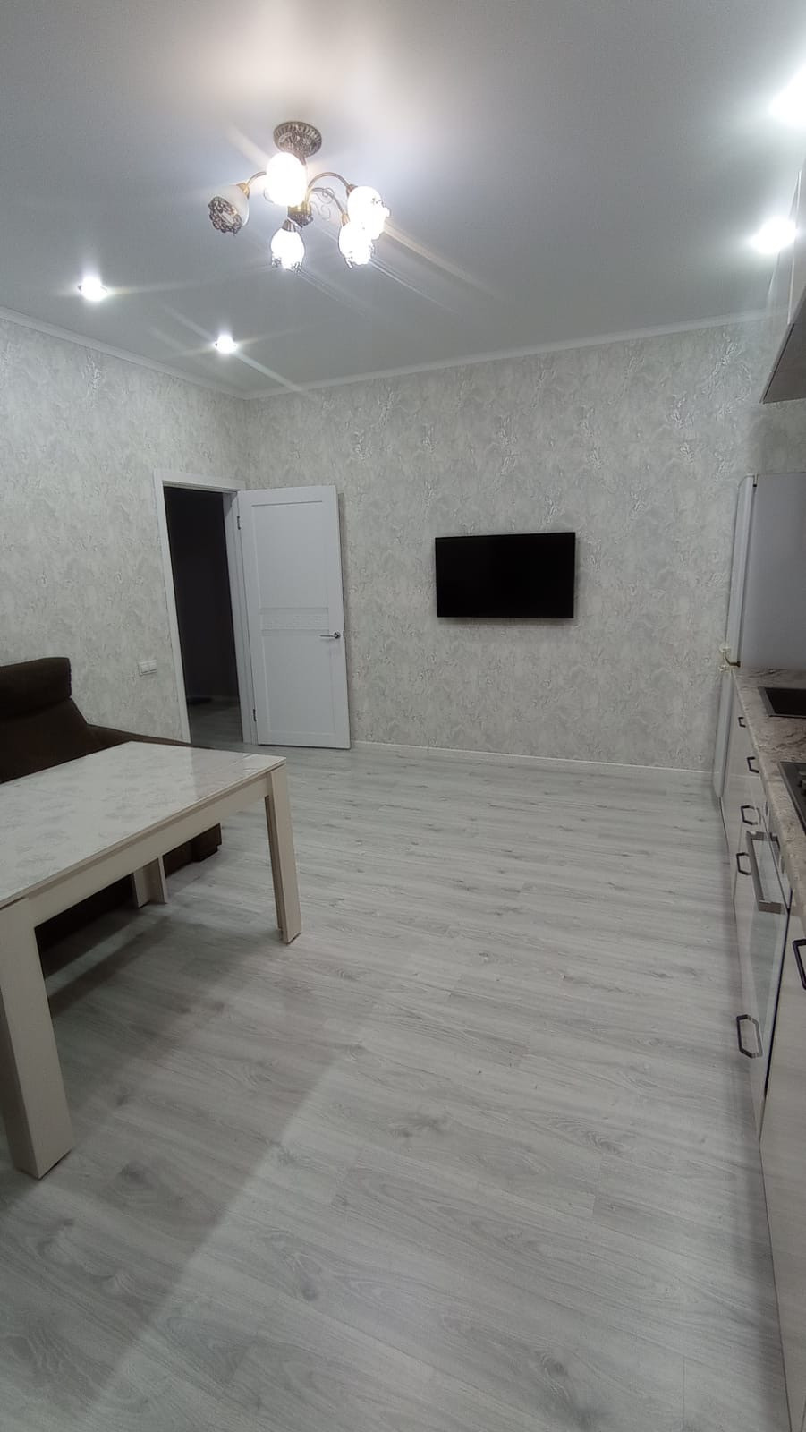 Материал стен, керамзитоблок , утеплен, обложен кирпичом. Потолки натяжные с точечным светильниками. На полу ламинат 33 класса светлого оттенка. Межкомнатные двери ламинированные. Три раздельных комнаты ( две спальни и зал) + большая кухня - гостиная. Отопление газовое. Санузел совмещен обложен кафелем, установлена душевая кабина, Вода- скважина.