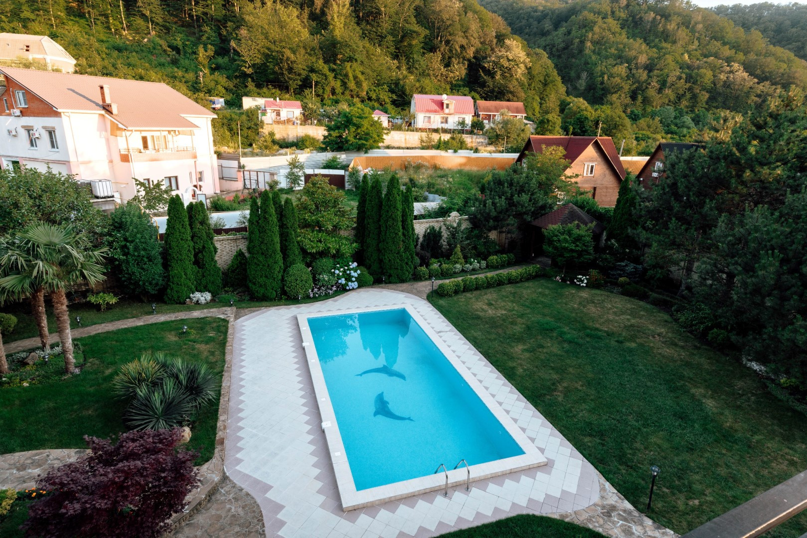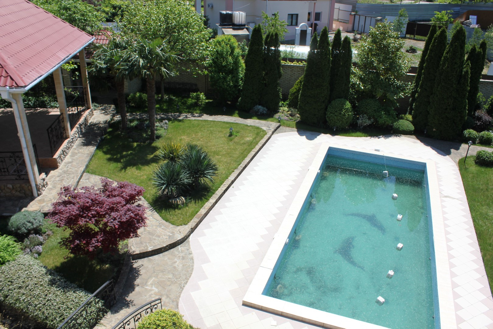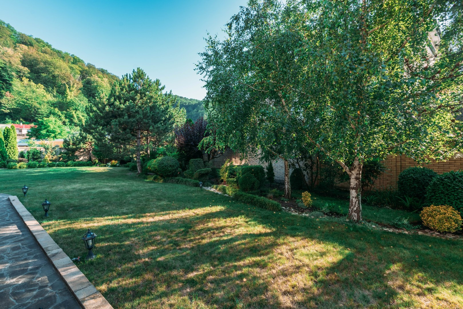 Участок с ландшафтным дизайном, газонами, дорожками, фруктовыми деревьями и декоративными кустарниками - всё продумано, сделано качественно, с любовью и на века!