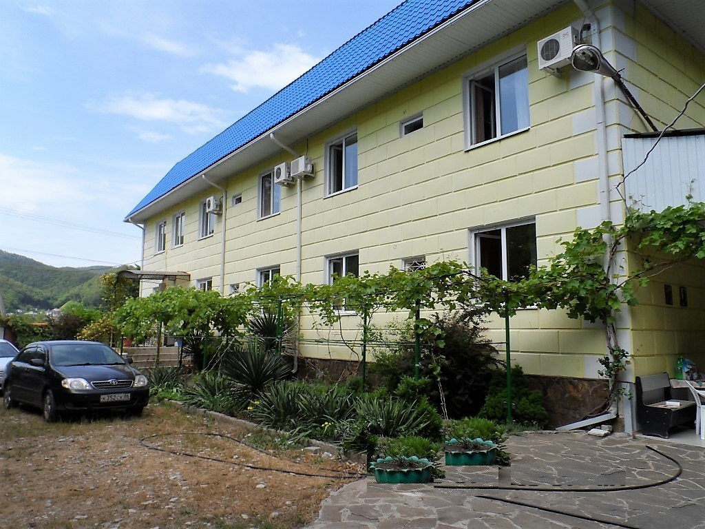 На черноморском побережье продается двухэтажный жилой дом с мансардой в п. Агой Туапсинского района, 2007 года постройки. Общая площадь строения 514,4 кв.м., вместе с мансардой и террасой 826 кв.м., жилая площадь – 286 кв.м. Два этажа здания уже используется под гостевые номера и проживания хозяев, 14 номеров вместимостью до 50 человек, номера большие, уютные, в каждом номере телевизор, холодильник, санузел, умывальник, душ, сплит-система, на 3 этаже выполнены подготовительные работы для размещения еще 14 номеров. Есть номера на любой вкус: эконом класса, семейные на 4 человека и vip номера. Фундамент усиленный, дом строили для себя, а не на продажу, качество постройки отличное. Материал постройки: блок. Полностью подключены все городские центральные коммуникации: электроснабжение, водоснабжение, водоотведение, а так же природный газ, что значительно экономит ваши платежи по отоплению дома. Земельный участок общей площадью 1095 кв.м., правильной прямоугольной формы. Категория земель: земли населенных пунктов. Разрешенное использование: для индивидуальной жилой застройки. Около дома имеется благоустроенная зона отдыха, автостоянка на 15 авто, детская площадка, навес с размещенной столовой и общая кухня-столовая для самостоятельного приготовления пищи, мангалы, беседки. Территория огорожена, установлено видео-наблюдение. В шаговой доступности продуктовые магазины, магазин “Магнит” с большим ассортиментом продукции, почта, сбербанк, школа, детский садик, мед. учреждение и т.п. Отдельно нам хотелось бы отметить такой аспект этого дома, как очень удачное расположение: Чистый воздух, климат с умеренной влажностью, купальный сезон – май-сентябрь (включительно). До моря 15-20 минут неспешным шагом.
