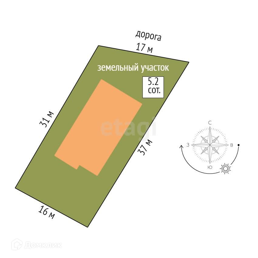 Площадь участка 5.2 сот.