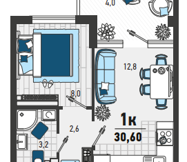 Общая площадь: 30 м2