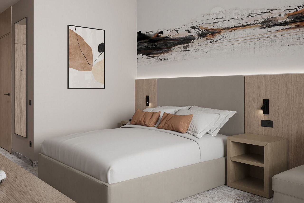 Удобные планировки отличаются правильной прямоугольной формой с большим количеством естественного света. Комплектация и ремонт номера входит в стоимость апартамента и будет выполнена в соответствии с международными стандартами отеля 4* и сервисными стандартами управляющей компании АLЕАN.