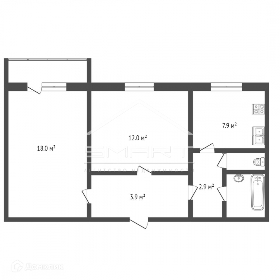 Жилая площадь 28.2 м2