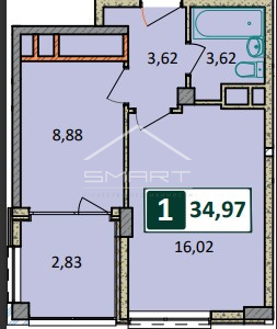 Общая площадь 34.97 м2
