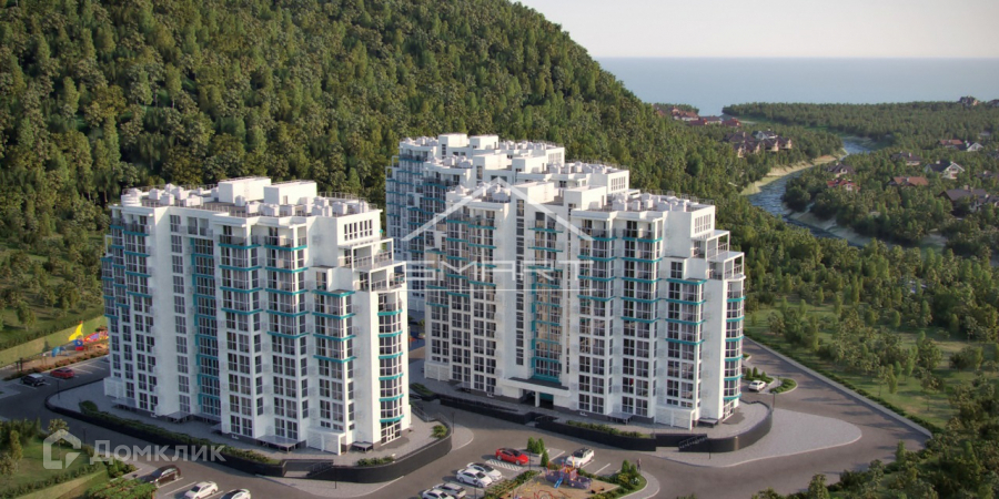 За счет каскадного расположения комплекса из большинства квартир открывается панорамный вид на Черное море. Многоэтажная застройка ЖК органично вписывается в существующий рельеф местности: архитектурное решение позволяет визуально связать поселок с морем и окружающим лесом, а композиция зеленых насаждений с газонами и деревьями преимущественно хвойных пород, способствует созданию благоприятного микроклимата.
