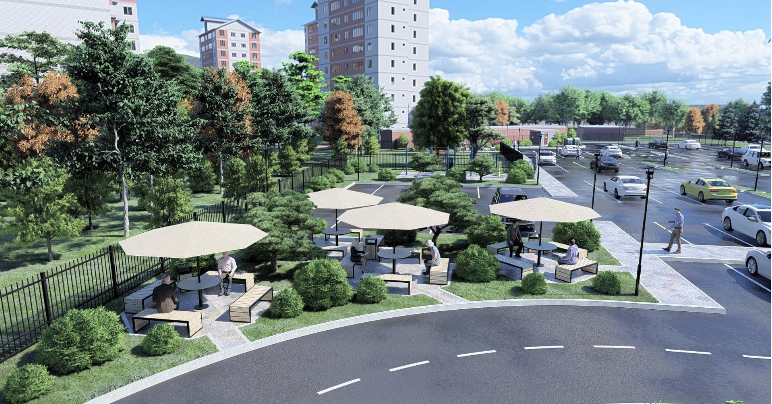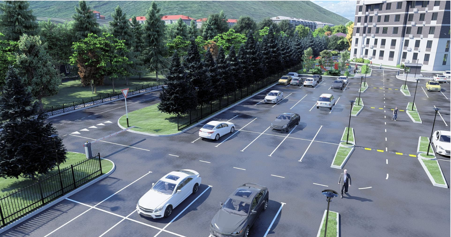 Своя трансформаторная подстанция, насосная станция повышения давления воды, пост охраны, спортивная площадка, детская площадка, площадка для отдыха взрослого населения, хозяйственные площадки.