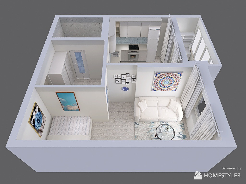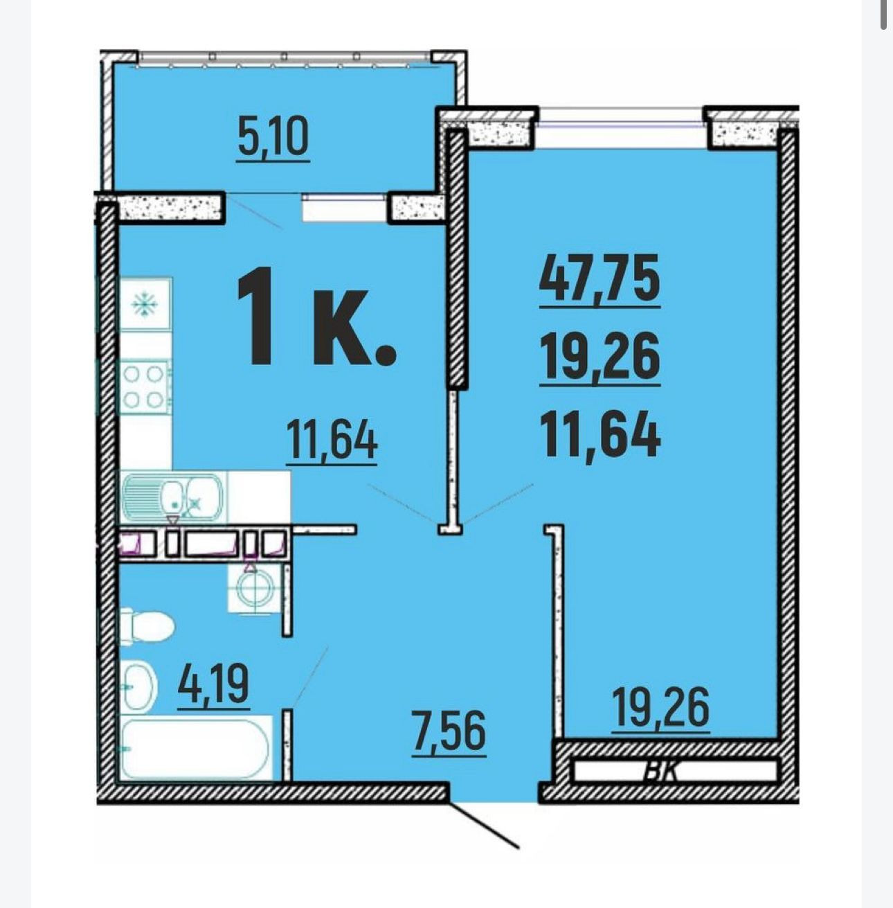 1 к. кв. с большим балконом, кухней и комнатой и видом на горы и море!