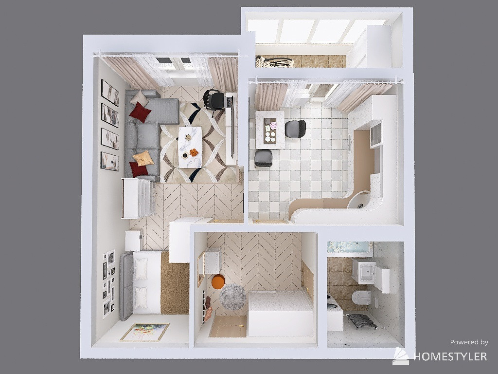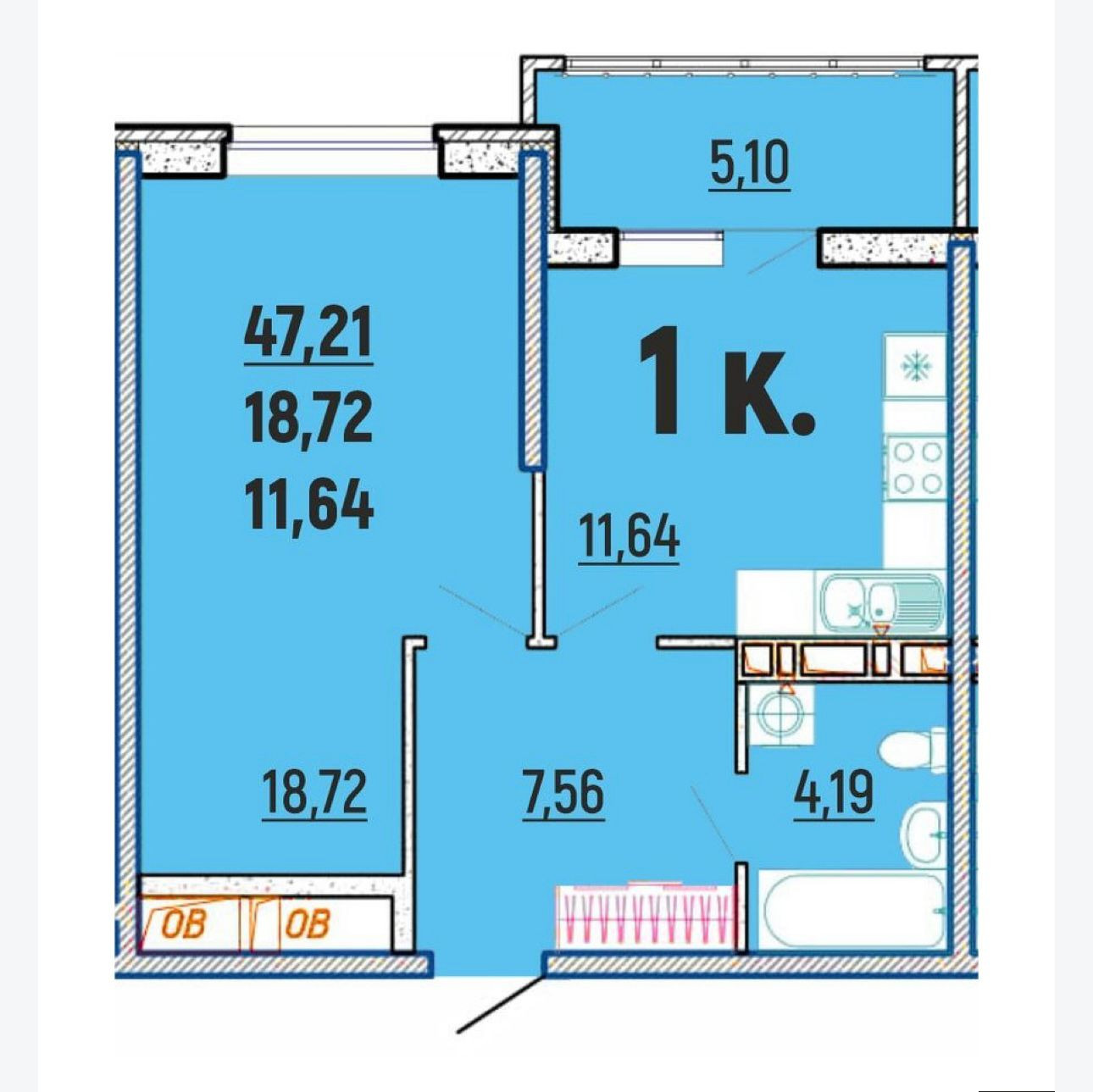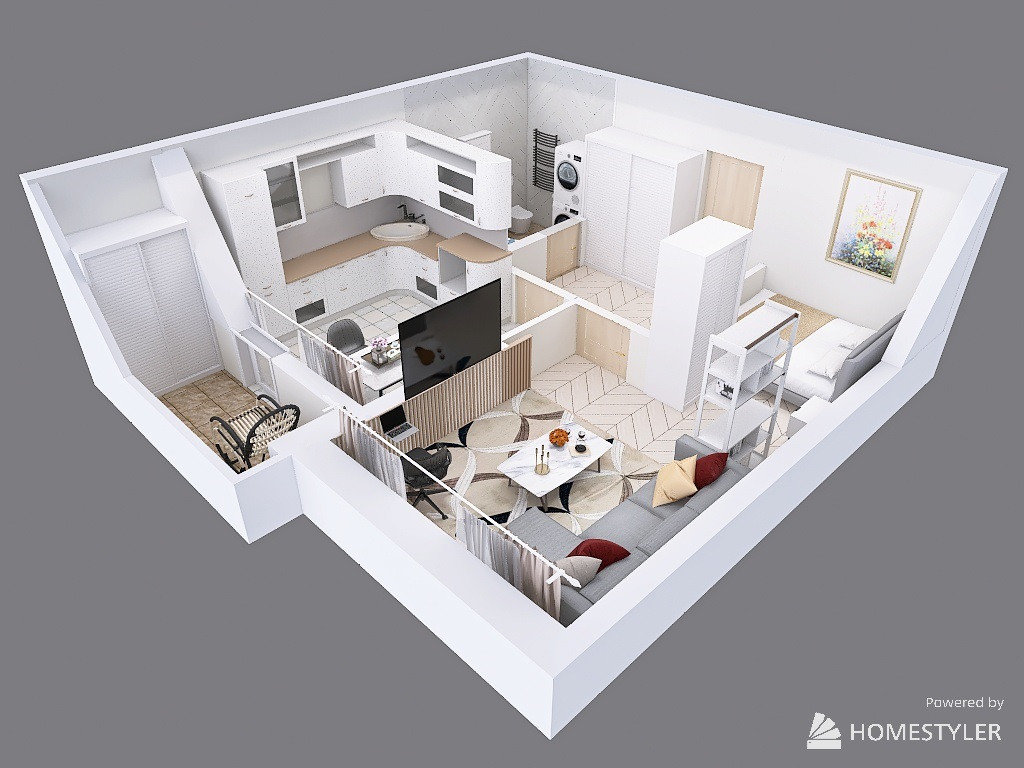 1 к. кв. с большим балконом, кухней и комнатой и видом на горы и море!