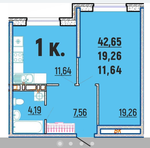 Общая площадь 42.11 м2