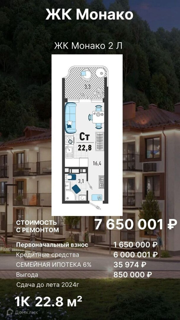 Прекрасный выбор для человека который хочет переехать на море и жить в красивейшем уголке Черноморского побережья! До моря 5 минут, 200+солнечных дней в году, в шаговой доступности школа, дет. сад, фитнес-центр, аптека, супермаркеты, кафе, рестораны, остановки общественного транспорта. Вид на горы и красивейшую субтропическую зелень. Квартира с ремонтом, кухонный гарнитур, ротанговая мебель для балкона. Можно рассматривать как инвестицию для сдачи в аренду круглогодично, так и для собственного пользования.