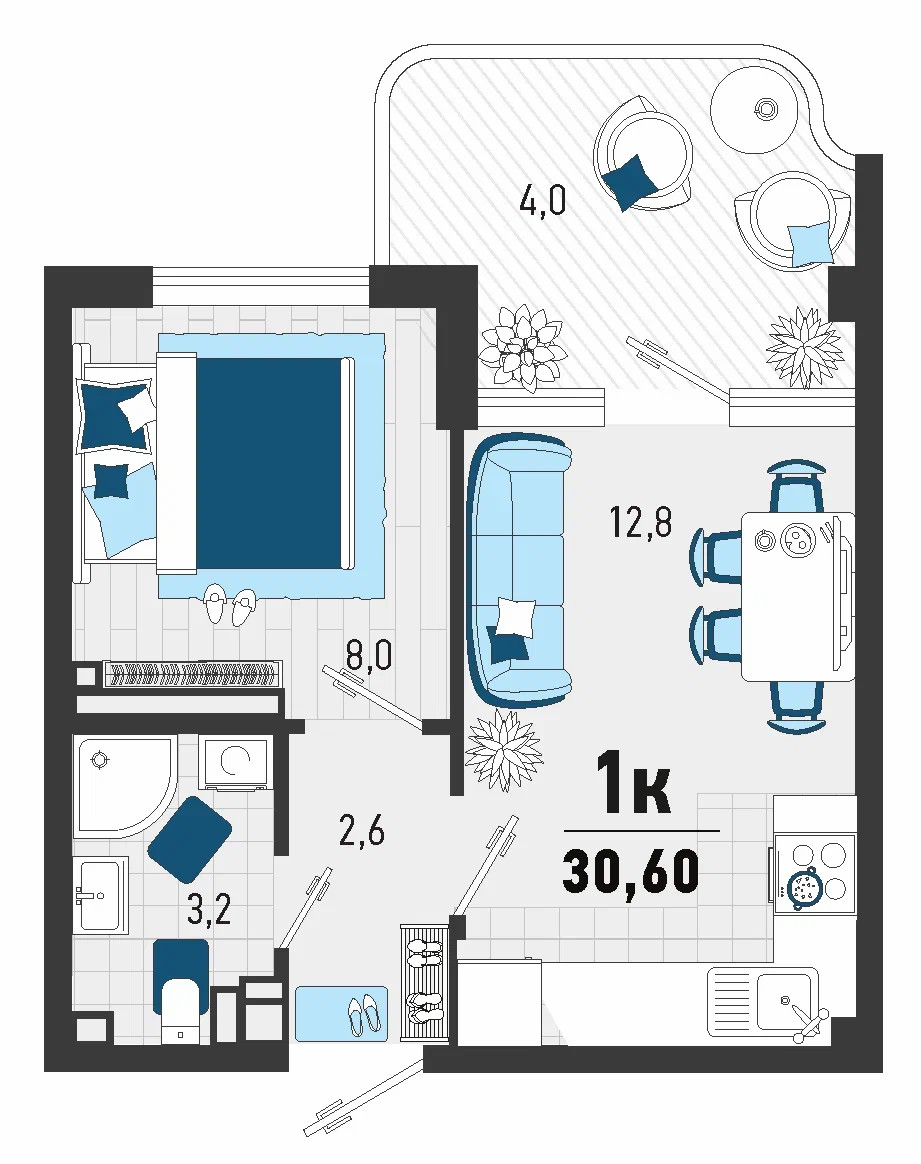 Общая площадь 30.6 м2