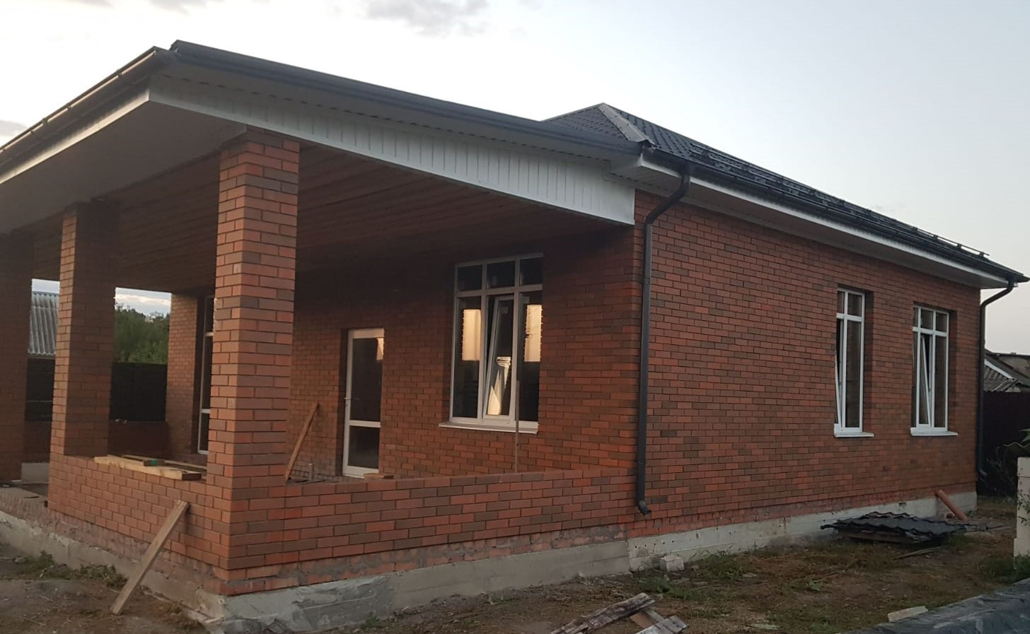 Продается дом на заключительном этапе строительства. Материал: газоблок+кирпичь+утеплитель 10 см. Стены оштукатурены, потолок утеплен, теплый пол и отопление. Вода- своя скважина. Автономная канализация. Интернет, электричество и газ в доме.