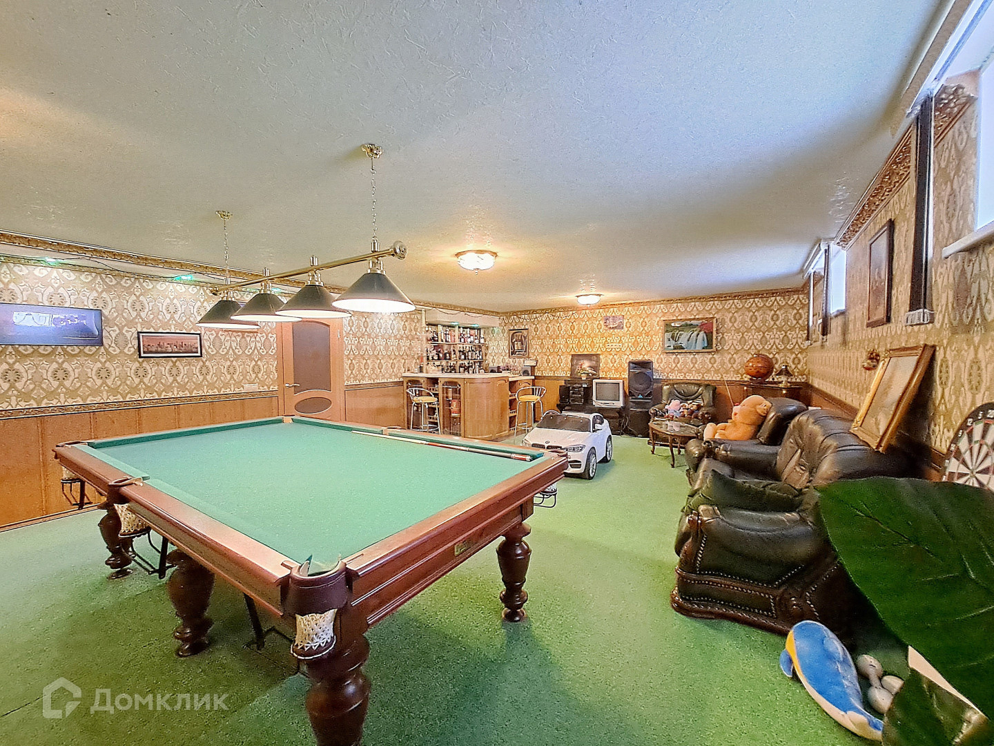 В цокольном этаже отдельный выход, 2 кладовки, бойлерная, помещение под оборудование для обслуживания бассейна, бильярдная с баром и барной стойкой, прачечная.
